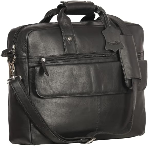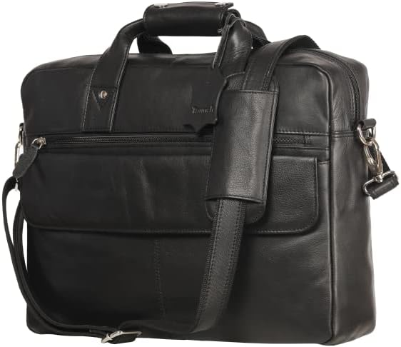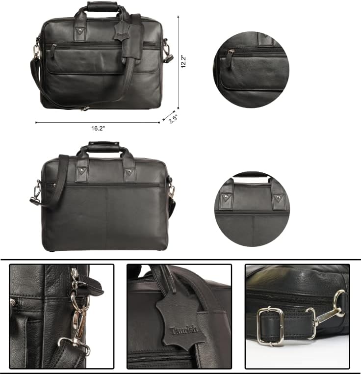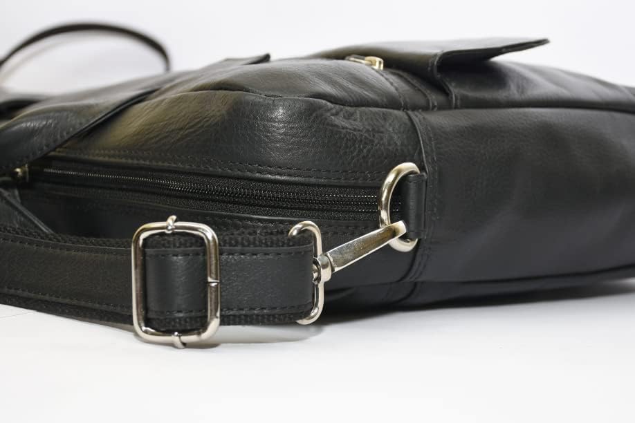 حقيبة جلدية Messengar Crossbody للرجال (لون أسود) حقيبة كمبيوتر محمول جلدية للسفر للمكتب وحقيبة الكلية مقاس 12.2 × 16.2 × 3.5 بوصة. هدايا للرجال