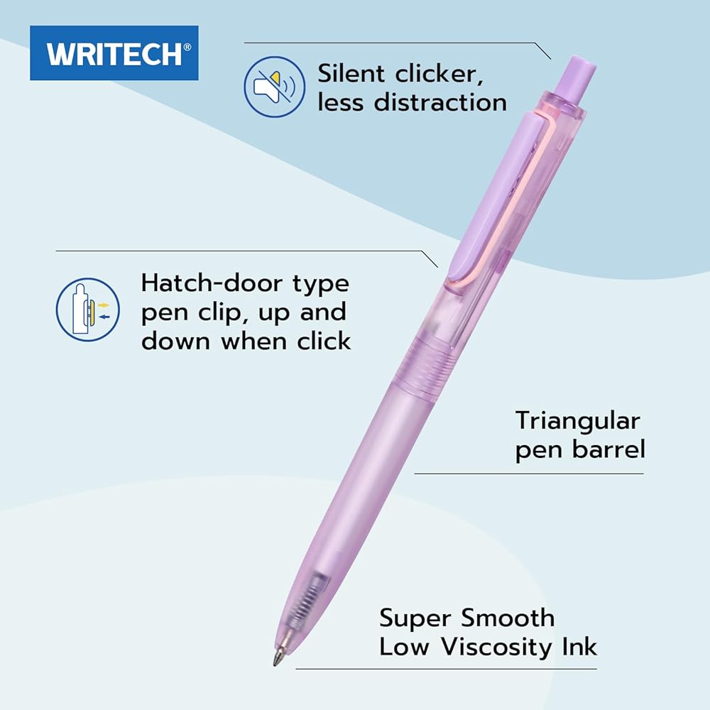 أقلام حبر جاف من WRITECH حبر أسود: 0.7 متر نقطة دقيقة قابلة للسحب 8 قيراط لون باستيل كتابة فائقة النعومة حبر منخفض اللزوجة مساحة لأعلى قلم حبر جاف بنقرة صامتة