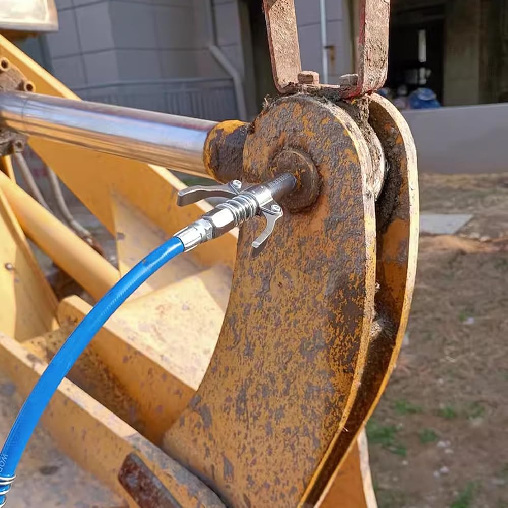 The High Pressure Grease Coupler is a great tool for mechanics, engineers, and hobbyists to apply lubricants and greases to various mechanical or moving parts with ease. Its well-designed lock clamp type grease nozzles provide high-pressure oil injection, high-elastic spring, and ergonomic design, making it stable, durable, and labor-saving. It is suitable for most pneumatic, electric or manual grease pump accessories and can provide better precision, pressure, and flow control in applying grease to extend the useful life of machinery and moving parts. Regular greasing improves machine life and uptime.