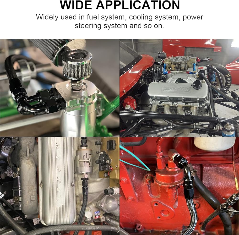 التوافق - تركيبات خرطوم الوقود MuRealy 6 AN متوافقة مع ناقل الحركة TH350، TH400، 4L60E، 700R4، 200-4R، TR6060، Ford AOD 4R100، 4R70W وC5. تُستخدم محولات تركيب ناقل الحركة 6an على نطاق واسع في أنظمة الوقود، وأنظمة التبريد، وأنظمة التوجيه المعزز، وما إلى ذلك.