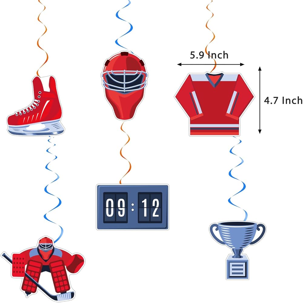 6 x hockey hanging swirls