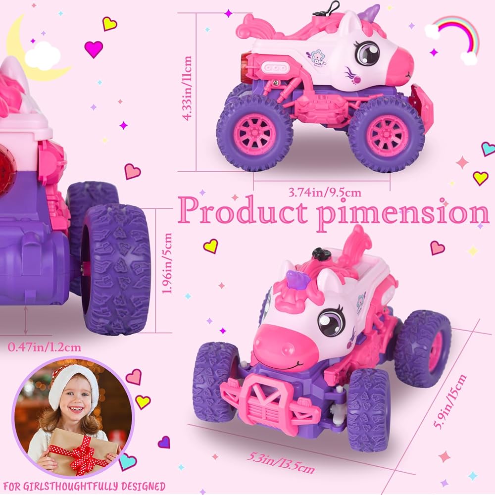 سيارة RC رائعة بطابع وحيد القرن: اسعد طفلك الصغير بسيارة وحيد القرن الساحرة التي تعمل بالتحكم عن بعد والتي تجمع بين جاذبية وحيد القرن وإثارة شاحنة الوحش.