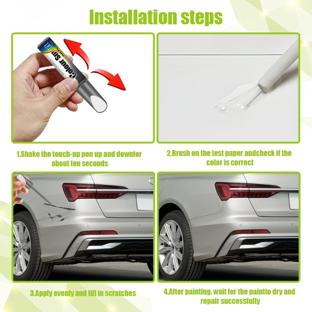 • [نطاق التطبيق]: يمكن لقلم إصلاح خدوش السيارة هذا إصلاح طلاء أي طراز، وجعل سيارتك تبدو جديدة بعد الإصلاح، ويمكن أن يساعدك على توفير الكثير من المال لمتجر الإصلاح، يرجى الشراء بثقة.
