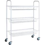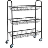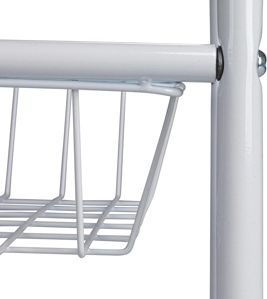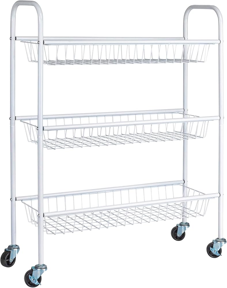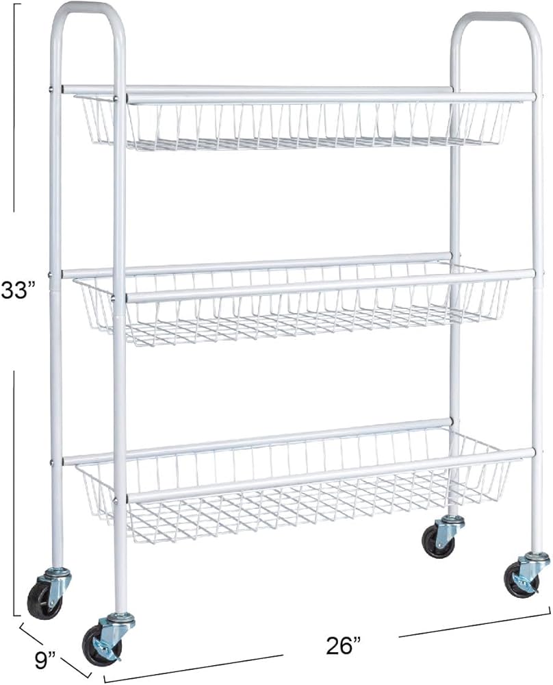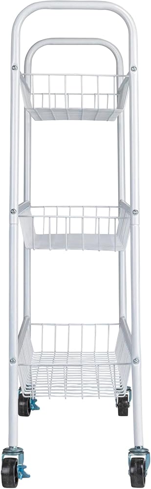 Find space for storage in the smallest of places with the help of this slim storage cart on smooth-rolling casters. This handy cart has a sleek profile and modern design to provide a functional storage option that looks just as chic as it is versatile. This slim storage cart has a durable steel frame on heavy-duty casters. The strong steel frame provides plenty of reliable support and long-term durability. The arched sides double as convenient handles to pull this cart in and out of tight spaces such as between the washer and dryer. Putting this storage cart together is easy with little assembly required. For increased mobility in small spaces, this cart rolls on smooth-rolling, heavy-duty casters. These casters can be locked with a simple press of a lever. This locking lever is also labeled for the on and off positions–so no need to guess if the wheels are locked or not! This versatile frame holds up 3 metal baskets which are made deep to easily hold larger laundry detergent bottles, a wide variety of toiletries, pantry essentials, planters and much more. This storage cart would be the perfect compact storage option for dorms, apartments, townhouses, tiny houses and any home with limited space. Its wide versatility and convenient qualities make this slim storage cart great for unlimited purposes around the house.