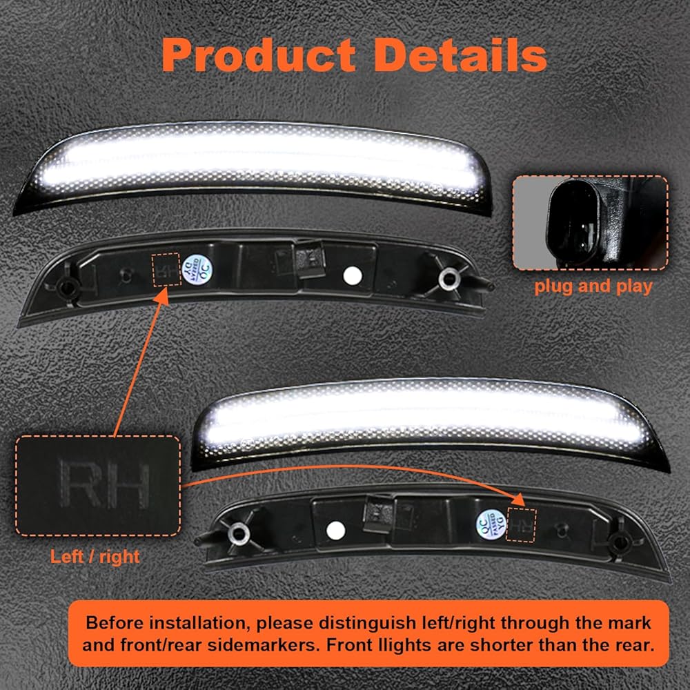 【تغليف رائع وخدمة ما بعد البيع】تم تجهيز كل مجموعة من مصابيح التحديد الجانبية LED بتغليف رائع وتأتي مع ضماننا المخلص لمدة عام واحد. بغض النظر عن أسئلتك أو احتياجاتك، فإن فريقنا المحترف متواجد على الإنترنت 24 ساعة يوميًا ويعدك بتقديم إجابة مرضية لك في غضون 24 ساعة.
