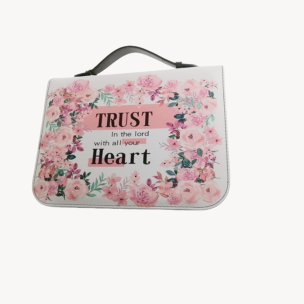 11.2 × 7.9 بوصة غطاء الكتاب المقدس الكلاسيكي الكبير من جلد البولي يوريثان، حقيبة دراسة الكتاب المقدس، حقيبة الكنيسة، حماية الكتاب المقدس مع مقبض للنساء والفتيات والأم (الوردي والأبيض)