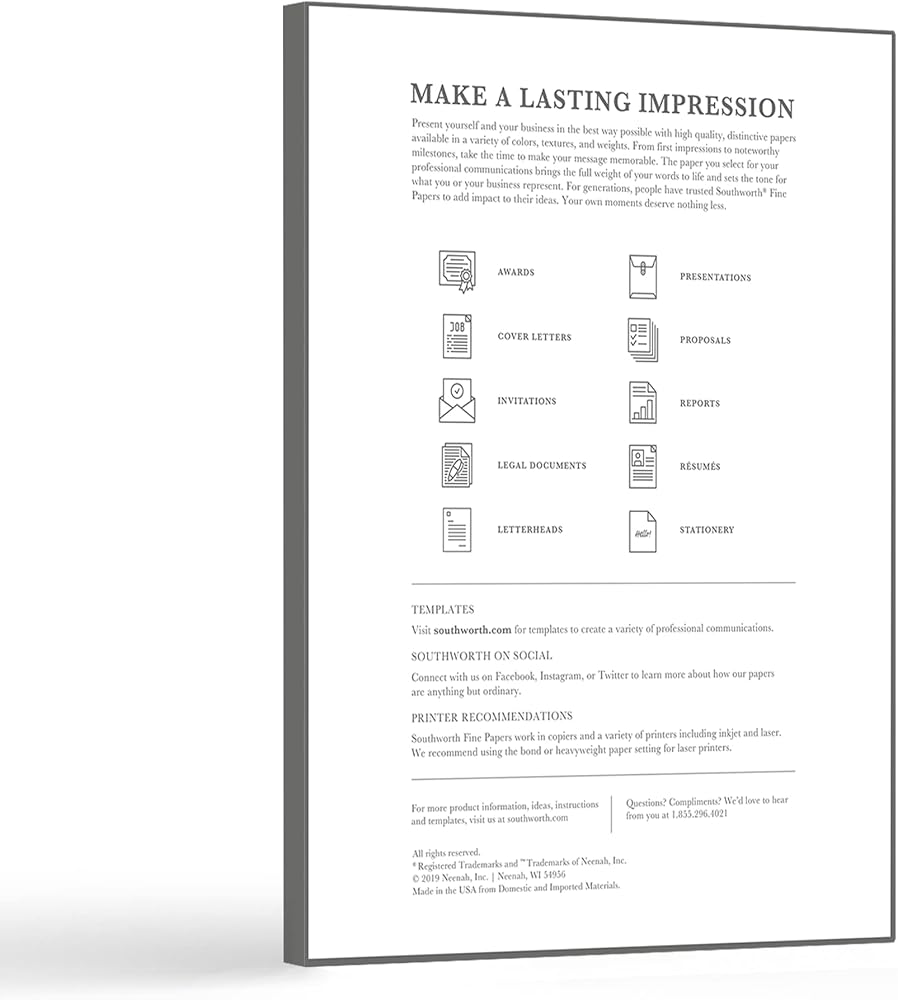 Southworth paper brings an old-world look and feel to your documents. Use this parchment specialty paper in your copier or inkjet or laser printer to create brilliant business documents that make a bold statement.