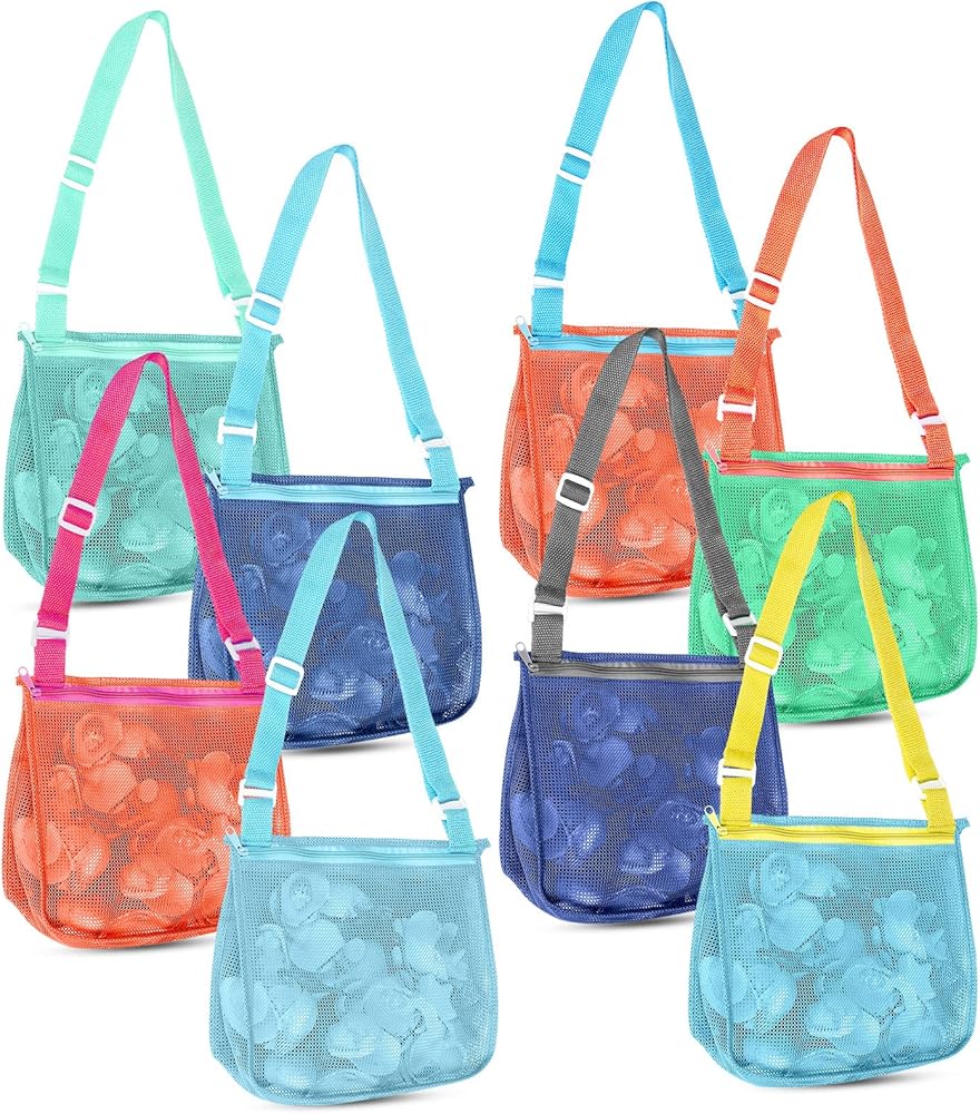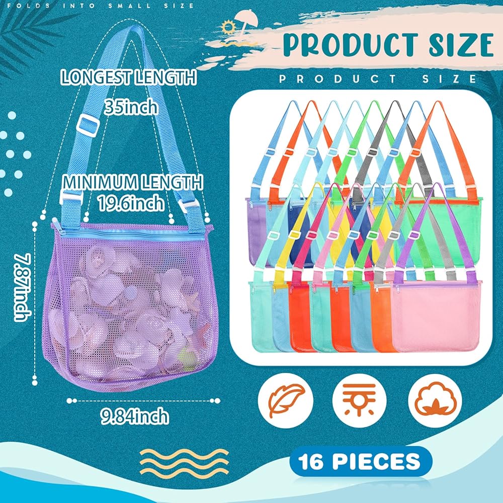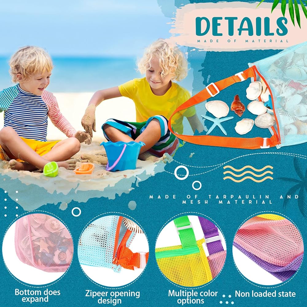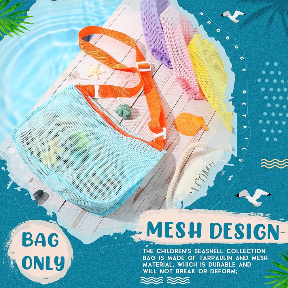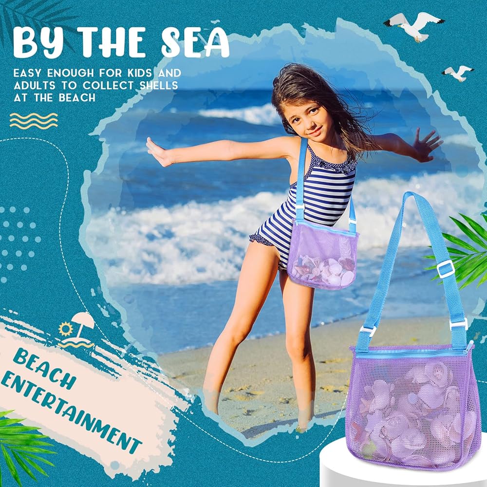 These beach seashell bags are portable and convenient to use, filter sand and water, dry quickly, easy to clean, very suitable for collecting shells and rocks at the beach.