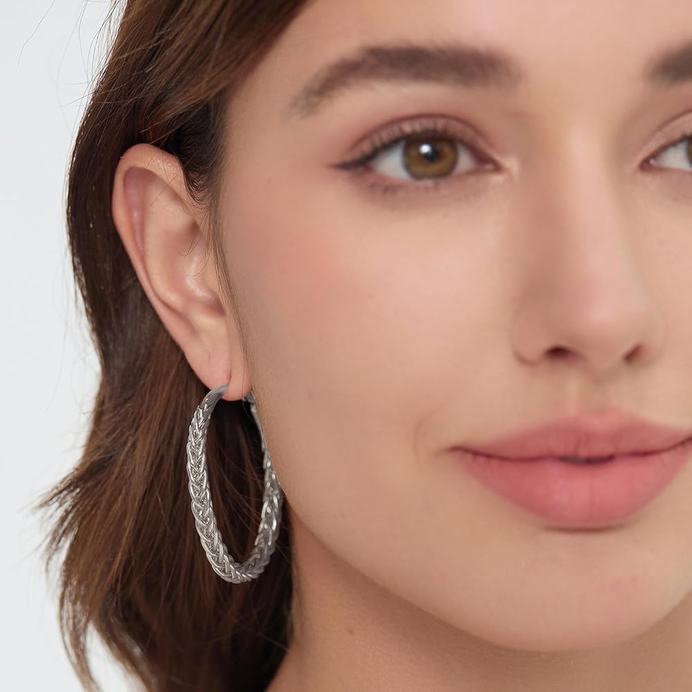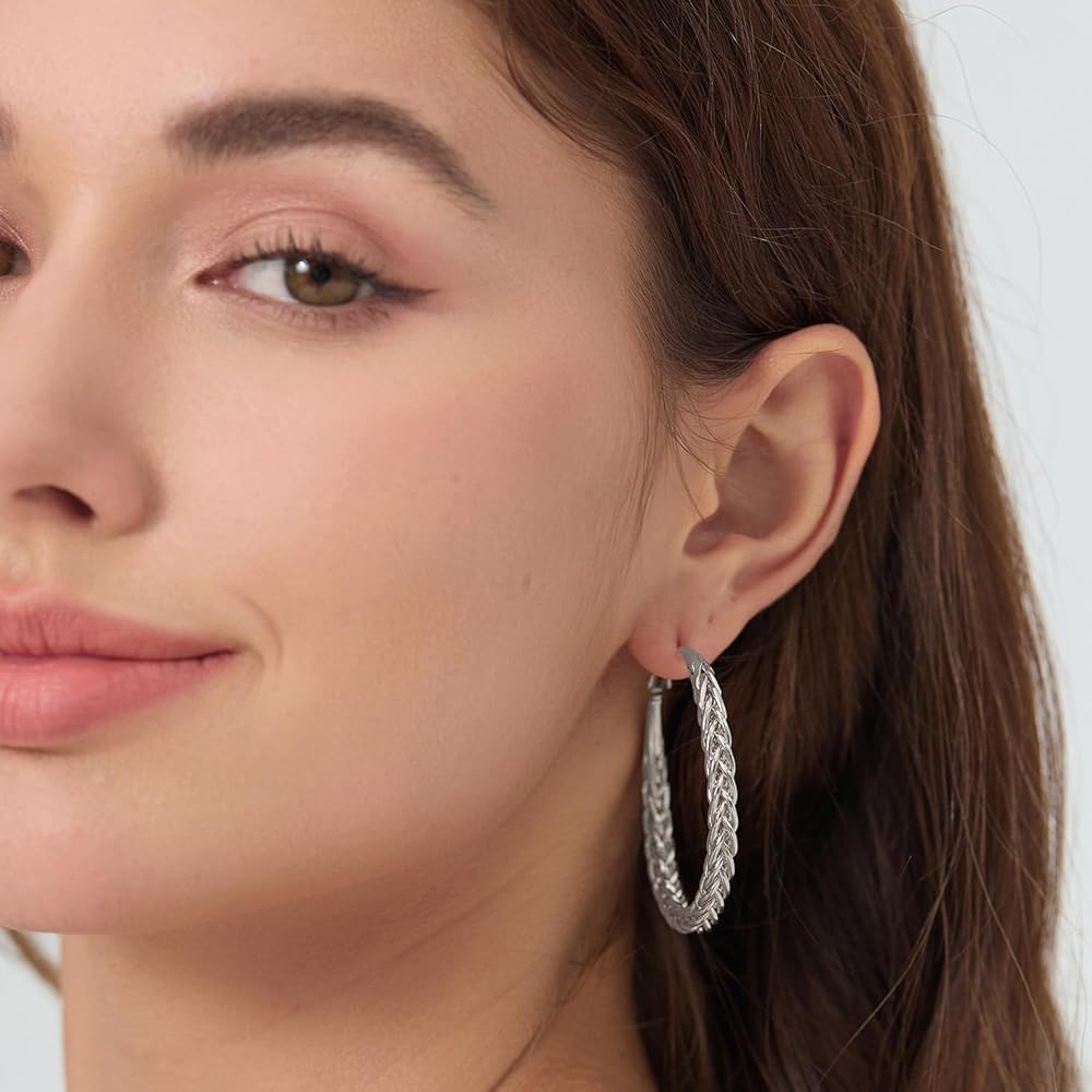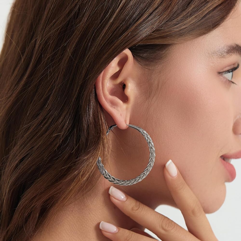 أقراط لا تسبب الحساسية: هذا القرط الكبير المكتنز المصنوع من الفضة الإسترلينية 925 مطلي بالذهب الحقيقي عيار 14 قيراط لضمان لمسة نهائية طويلة الأمد للنساء بدون أقراط من النيكل. هذا القرط ذو الأطواق الذهبية الكبيرة خفيف الوزن هو حلق متطور لحماية البيئة مع عمود من الفضة النقية. إنها مادة مضادة للحساسية، ولا يعاني مرتديها من الحساسية.