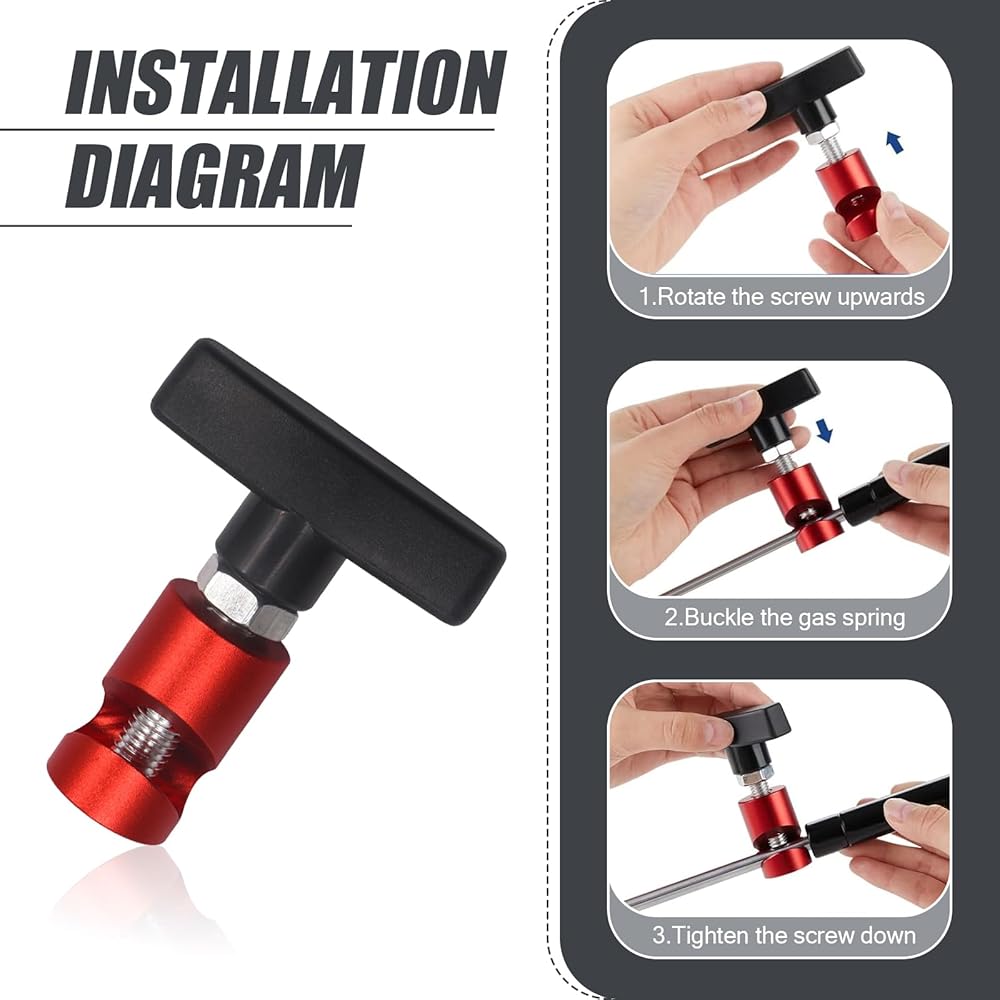 Instructions for Use: The car hood support bar holds the lifter clamp firmly in a straight state. Place the tool on the lifter next to the cylinder body and tighten it with the knob until it is fixed on the lifter.