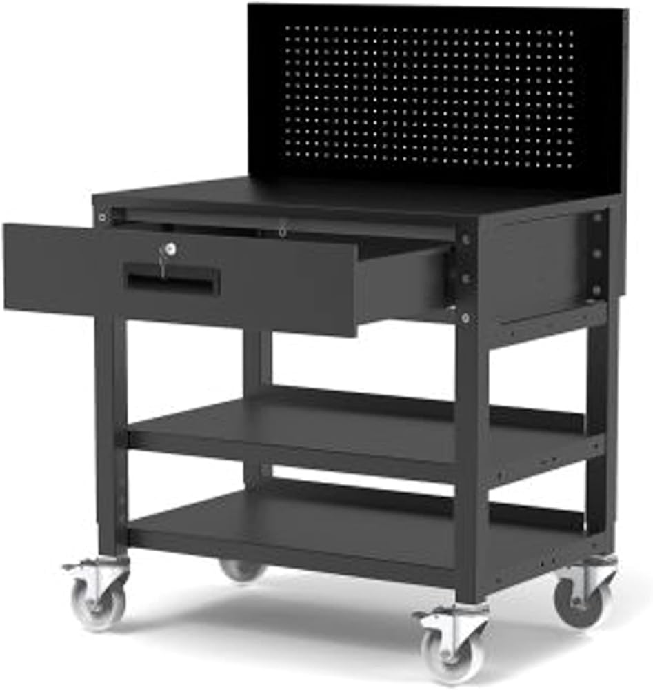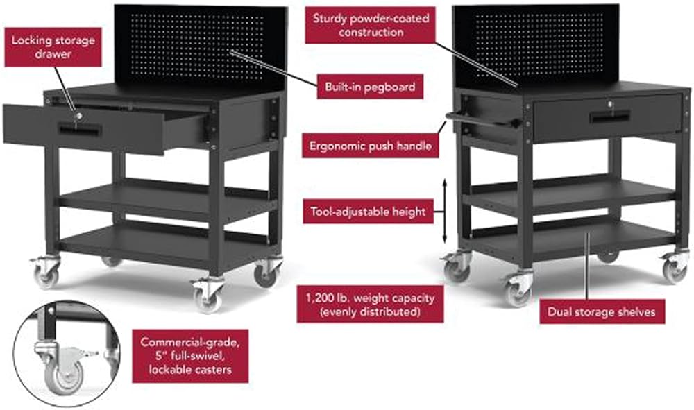 - Luxor Indoor Modern Built-in Pegboard Heavy-Duty Mobile Workstation