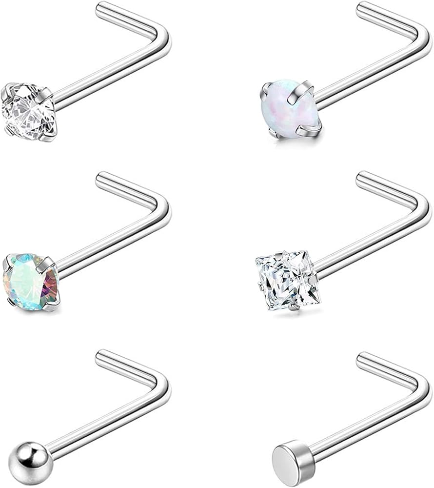 6-15 قطعة حلقات الأنف للنساء والرجال 316L الفولاذ المقاوم للصدأ ثقب الأنف مجوهرات مستقيمة على شكل حرف L مجموعة أزرار الأنف الفضية والذهبية (Silver-6Pcs)