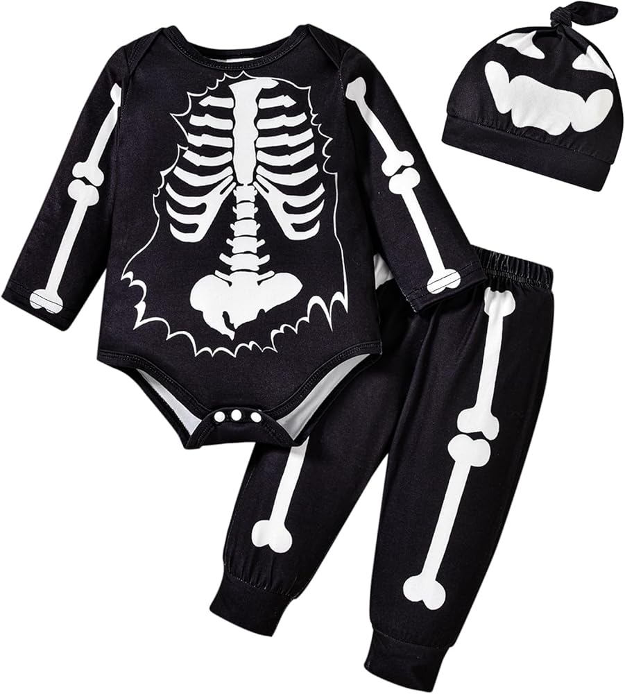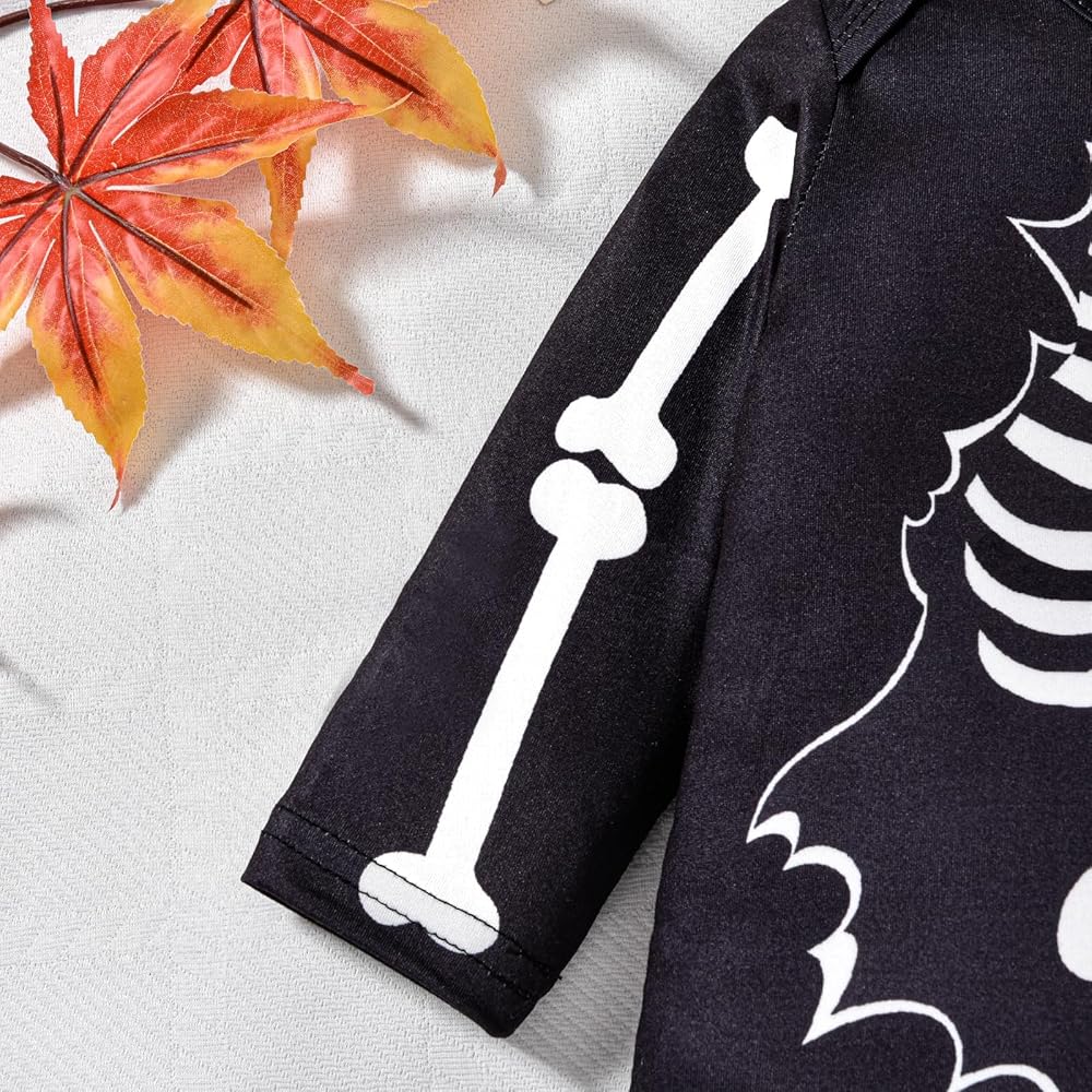 - التصميم: زي تنكري للأطفال، زي تنكري بهيكل عظمي لطيف، بدلة رومبير بأكمام طويلة ومجموعة سراويل الركض، زي هيكل عظمي للأطفال، ملابس الهالوين للأطفال