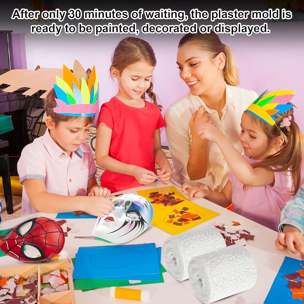 سهلة الاستخدام: كل غلاف جبس مملوء مسبقًا بمسحوق الجبس. ما عليك سوى غمس الضمادة المشربة بالجبس في الماء وضعها على الجلد أو تشكيلها حسب رغبتك. بعد 30 دقيقة فقط من الانتظار، يصبح قالب الجبس جاهزًا للطلاء أو التزيين أو العرض