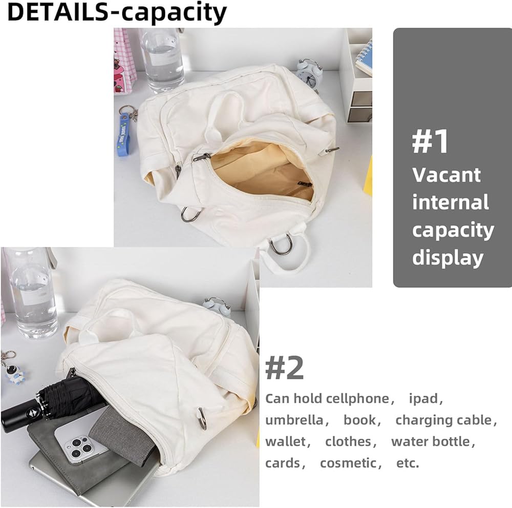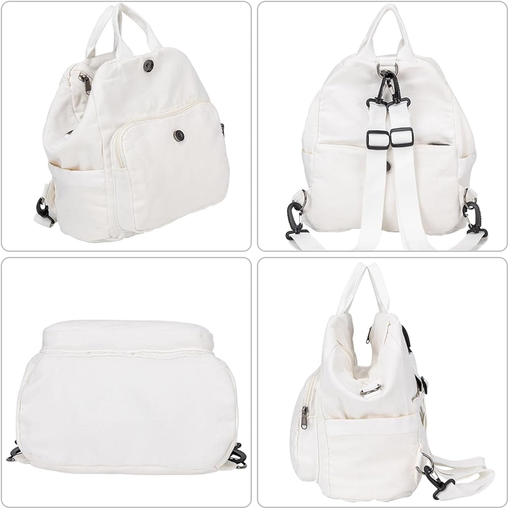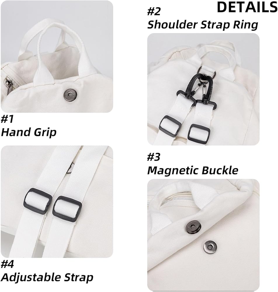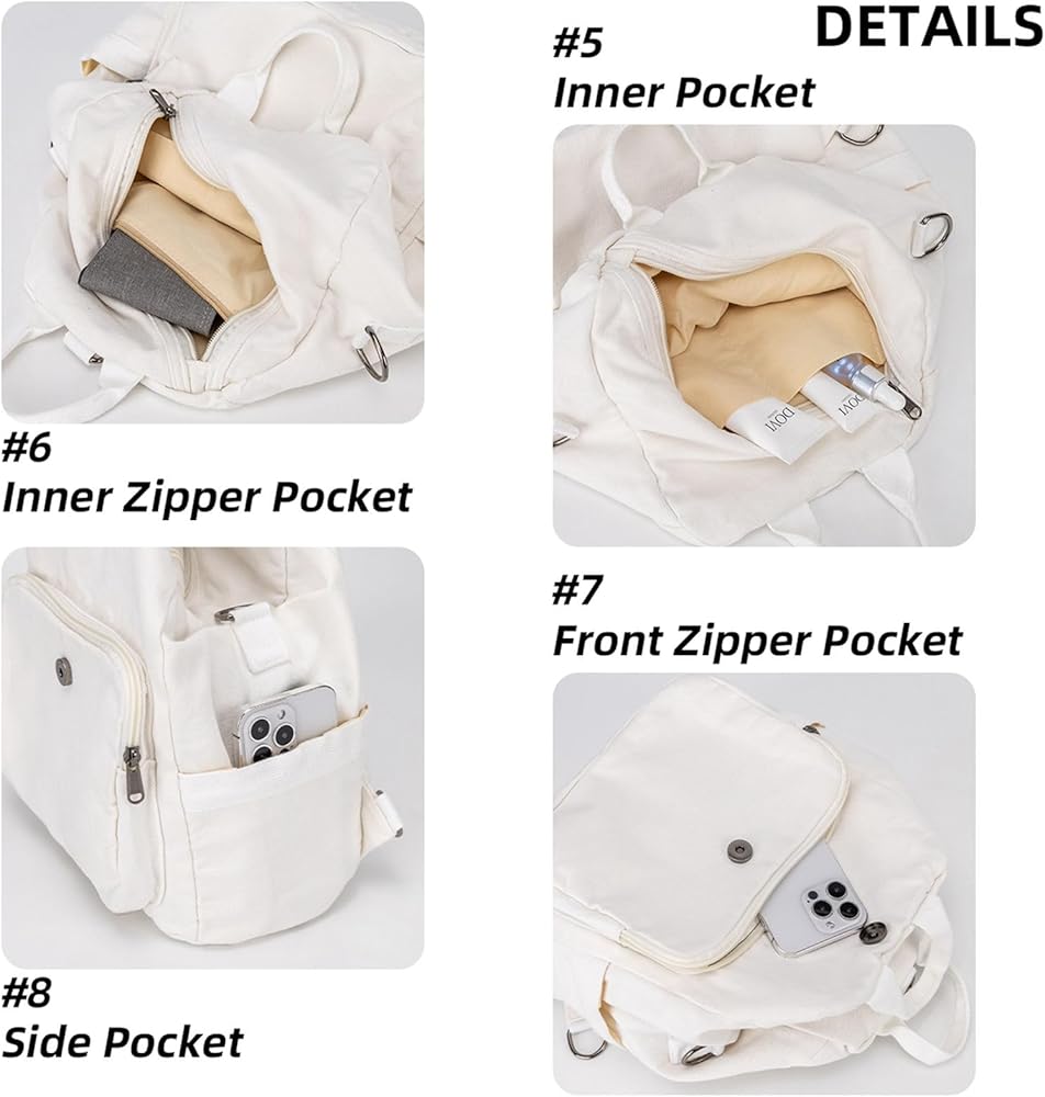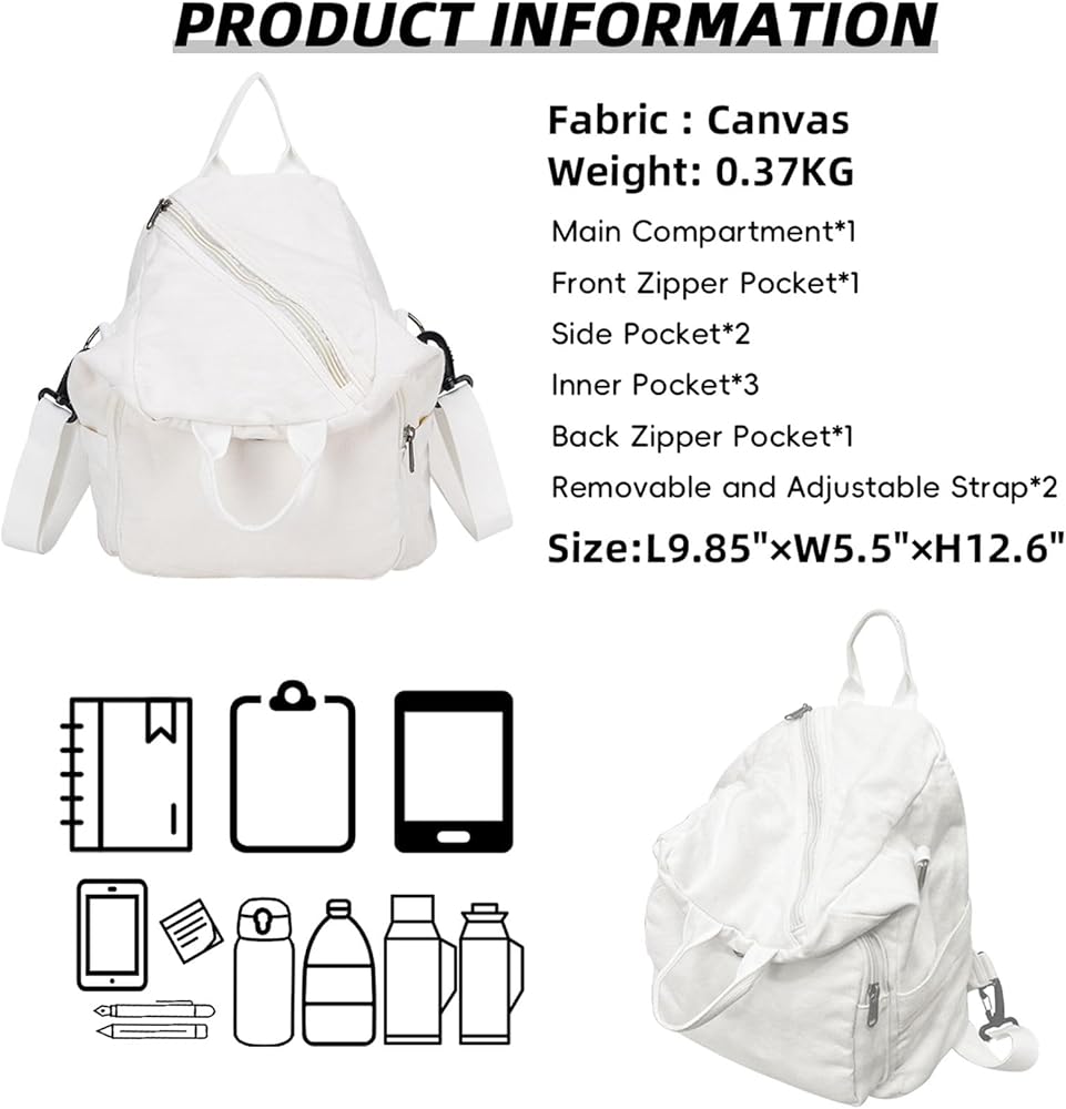 【جيوب متعددة وسعة كبيرة】 حقيبة ظهر قماشية صغيرة خفيفة الوزن وقوية تحتوي على جيوب تخزين متعددة. يمكنها حمل ضرورياتك اليومية مثل: الهاتف الخلوي، الآيباد، المظلة، كابل الشحن، المحفظة، الملابس، زجاجة المياه، البطاقات، مستحضرات التجميل، إلخ. الحجم: الطول 9.85 × العرض 5.5 × الارتفاع 12.6 بوصة.