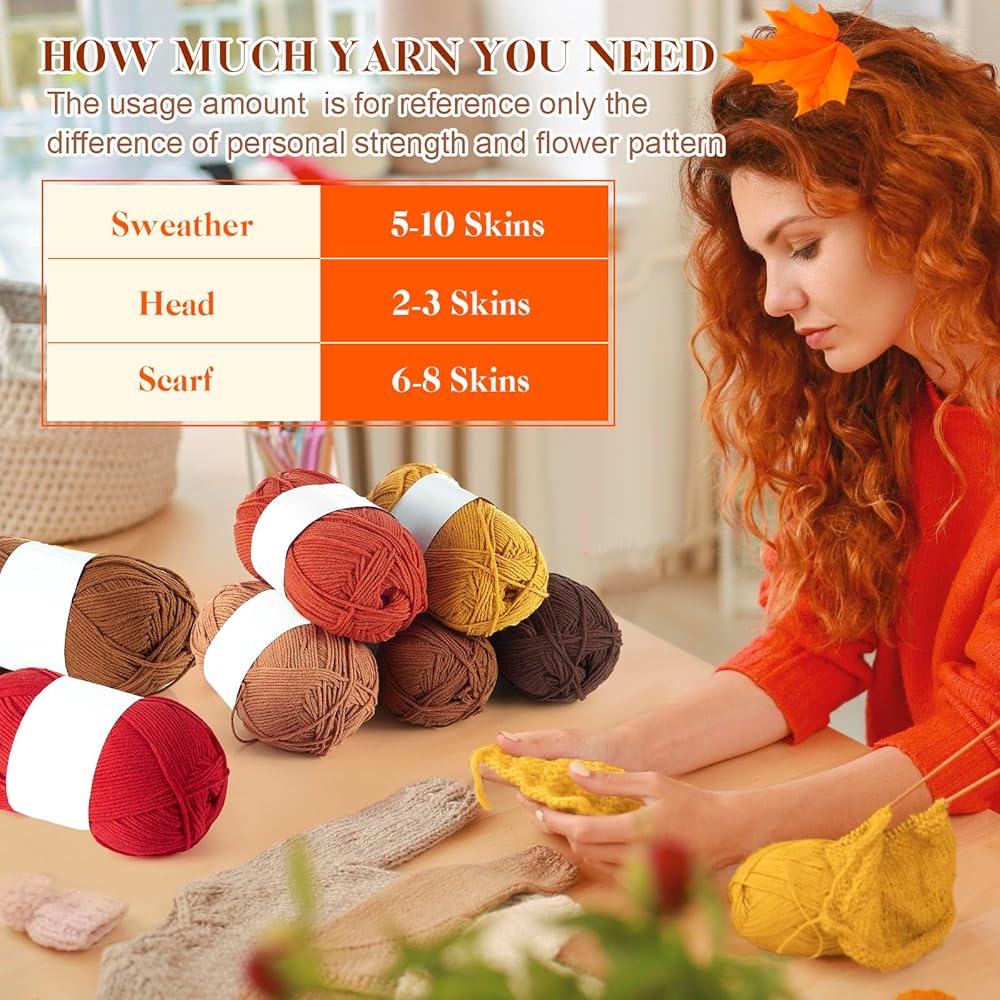 • Autumn Colored Knitting Yarn: its warm and inviting colors make the autumn yarn for crafting thoughtful handmade gifts for your loved ones, you can create a sweater with 5-10 skeins, shawls with 8-9, scarves with 6-8, and hats with just 2-3 skeins, whether you're knitting, crocheting or handcrafting, it helps in achieving tight, uniform, and detailed stitches for all your projects