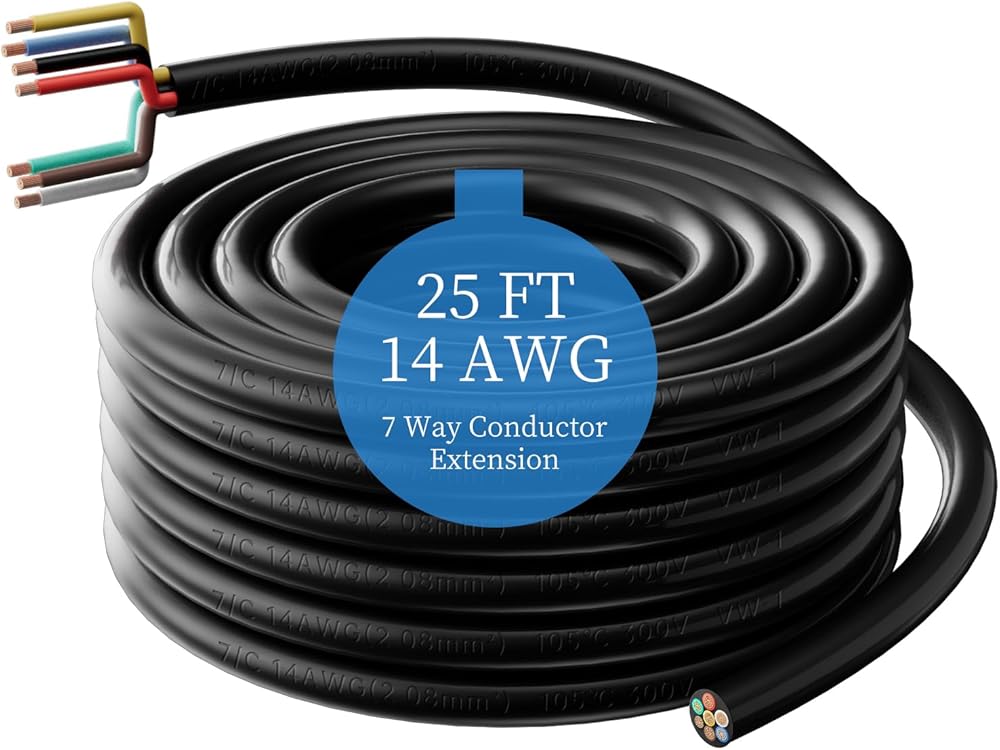 【TRAILER WIRE SPECIFICATION】The trailer wiring harness is composed of seven 14-gauge pure copper wires in red, black, yellow, brown, green, blue and white. The outer sheath is made of PVC material that can withstand high temperatures of temperatures from -40°C to +105°C. Wiring harness maximum withstand voltage: 300V