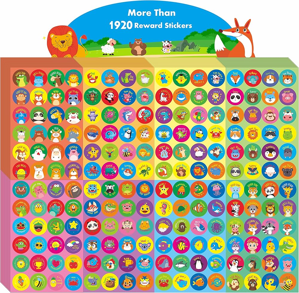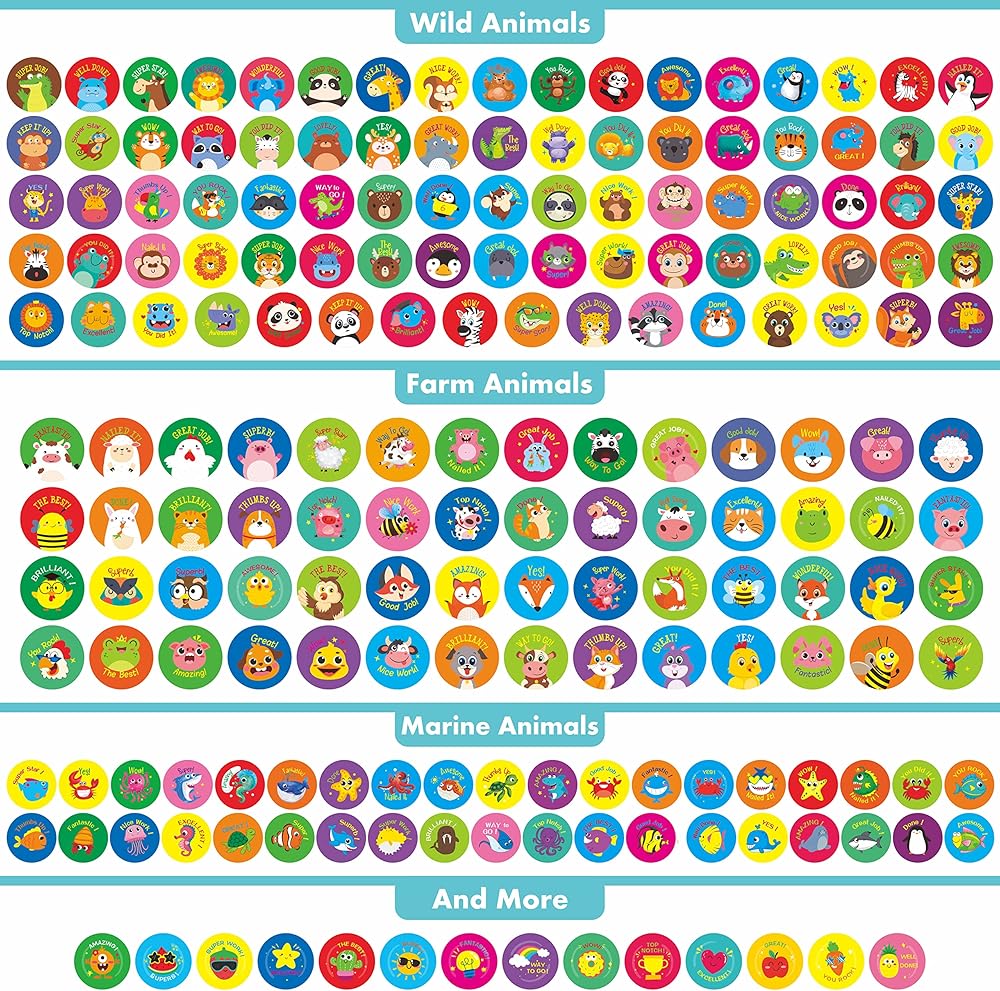 أكثر من 1920 ملصقًا حافزًا على شكل حيوانات مستديرة، أكثر من 190 تصميمًا كرتونيًا، هدايا تحفيزية للمعلمين في الفصول الدراسية، حيوانات برية/مزرعة/بحرية، تشجع الأطفال على القيام بالأعمال المنزلية والذهاب إلى المرحاض (10 ورقات)