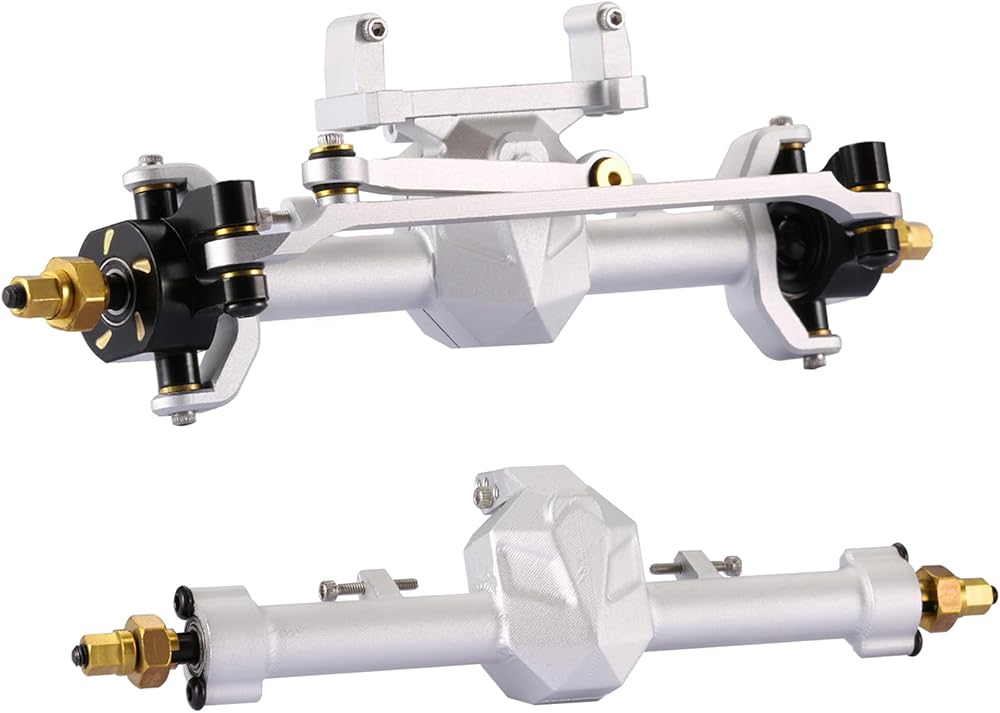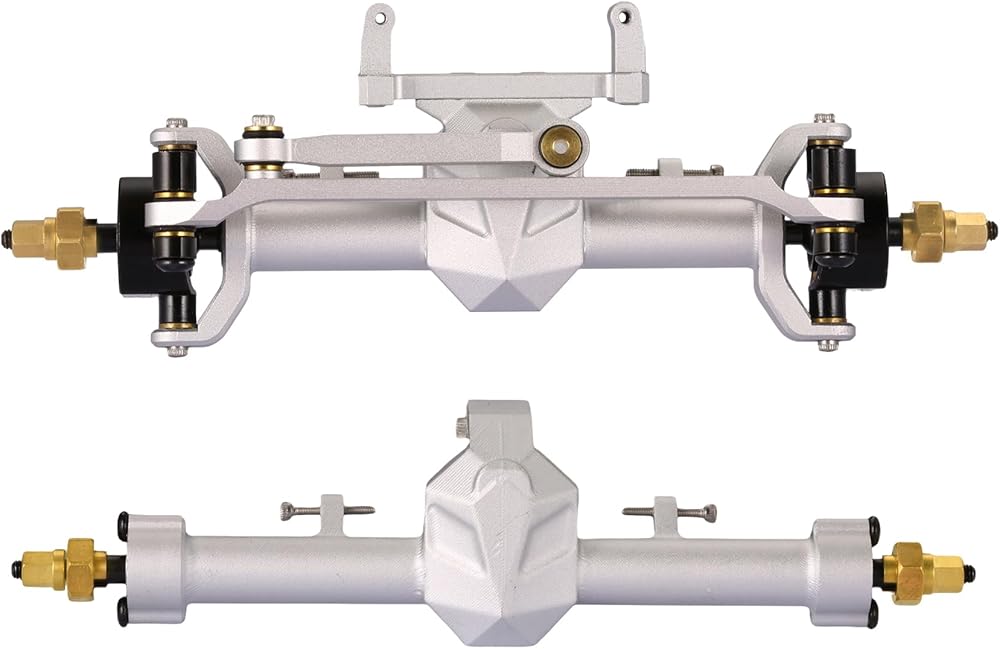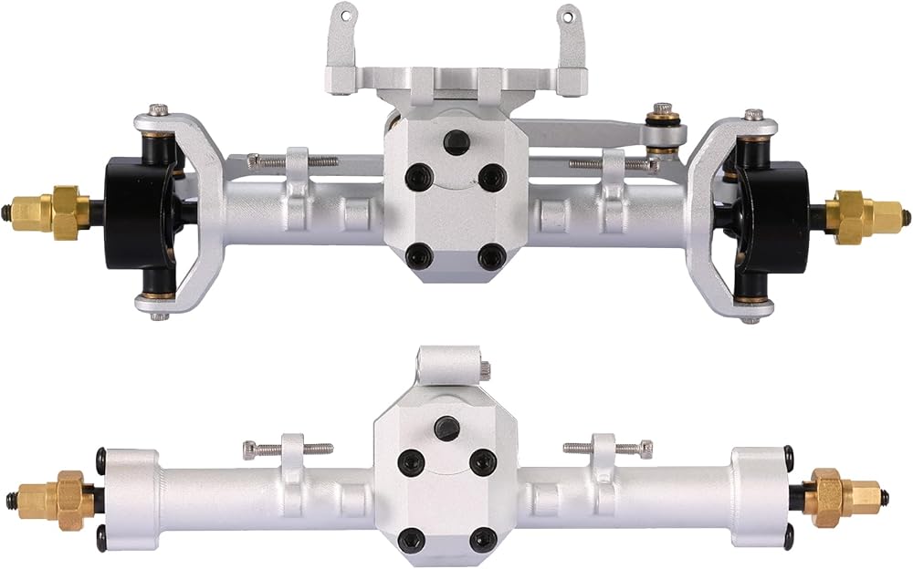 متوافق مع محاور SCX24: محاور SCX24 هذه مصنوعة من سبائك الألومنيوم، مع مكونات وزن المحور الأمامي مصنوعة من النحاس، وتعمل كبديل مباشر للمحاور الأمامية والخلفية SCX24 الأصلية. وهو متوافق مع سلسلة Axial SCX24 بأكملها، بما في ذلك Deadbolt وJLU وC10 وGladiator وBronco.
