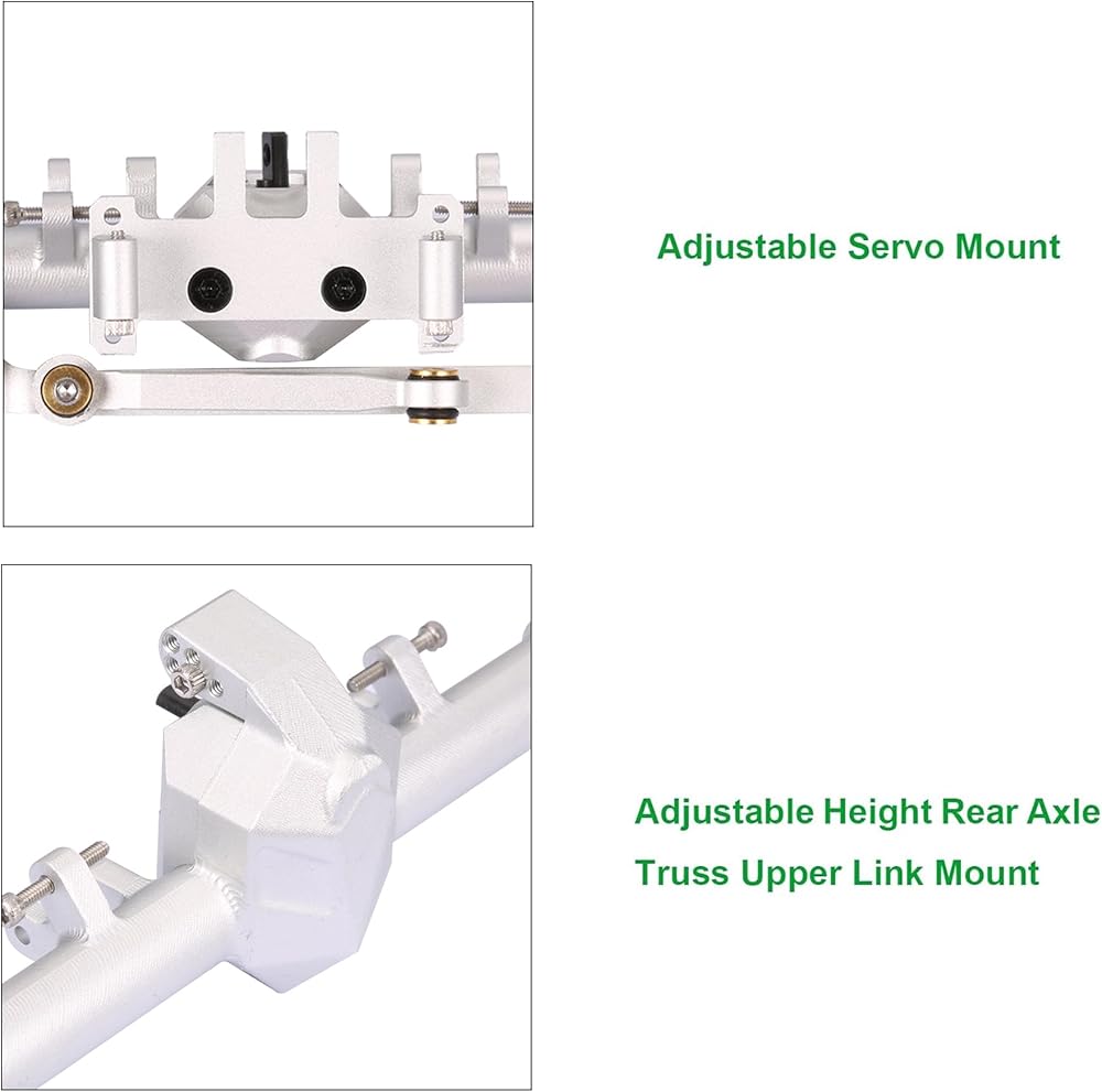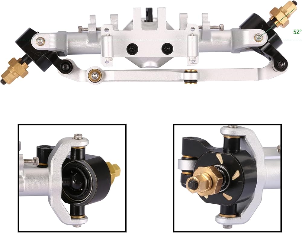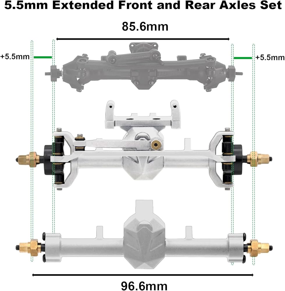 ميزات التصميم: بالمقارنة مع محاور SCX24 الأصلية، فإن محاور SCX24 الخاصة بنا ممتدة بمقدار 5.5 ملم على كلا الجانبين، مما يوفر زاوية توجيه قصوى تبلغ 52 درجة
