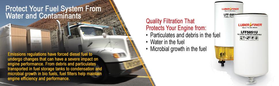 Luberfiner offers a full line of reliable fuel filters that provide the highest in fuel cleansing efficiency and capacity by trapping harmful contaminants such as dirt, water, scale, and rust before they reach your vehicle's fueling system. Today's heavyduty engines demand high performance with protection for vital engine and fuel system components. Luberfiner offers the highest quality fuel filter components ensuring OEM (original equipment manufacturer) replacement for form, fit, and function. Luberfiner fuel filters are the best insurance for the life of your engine
