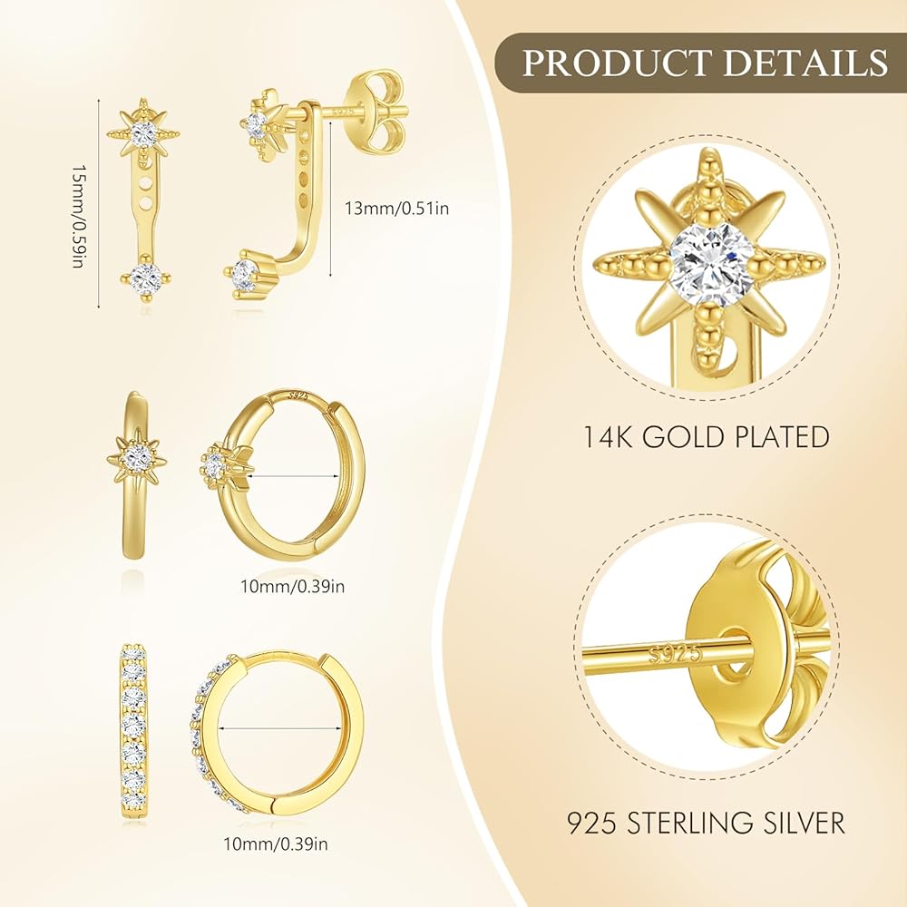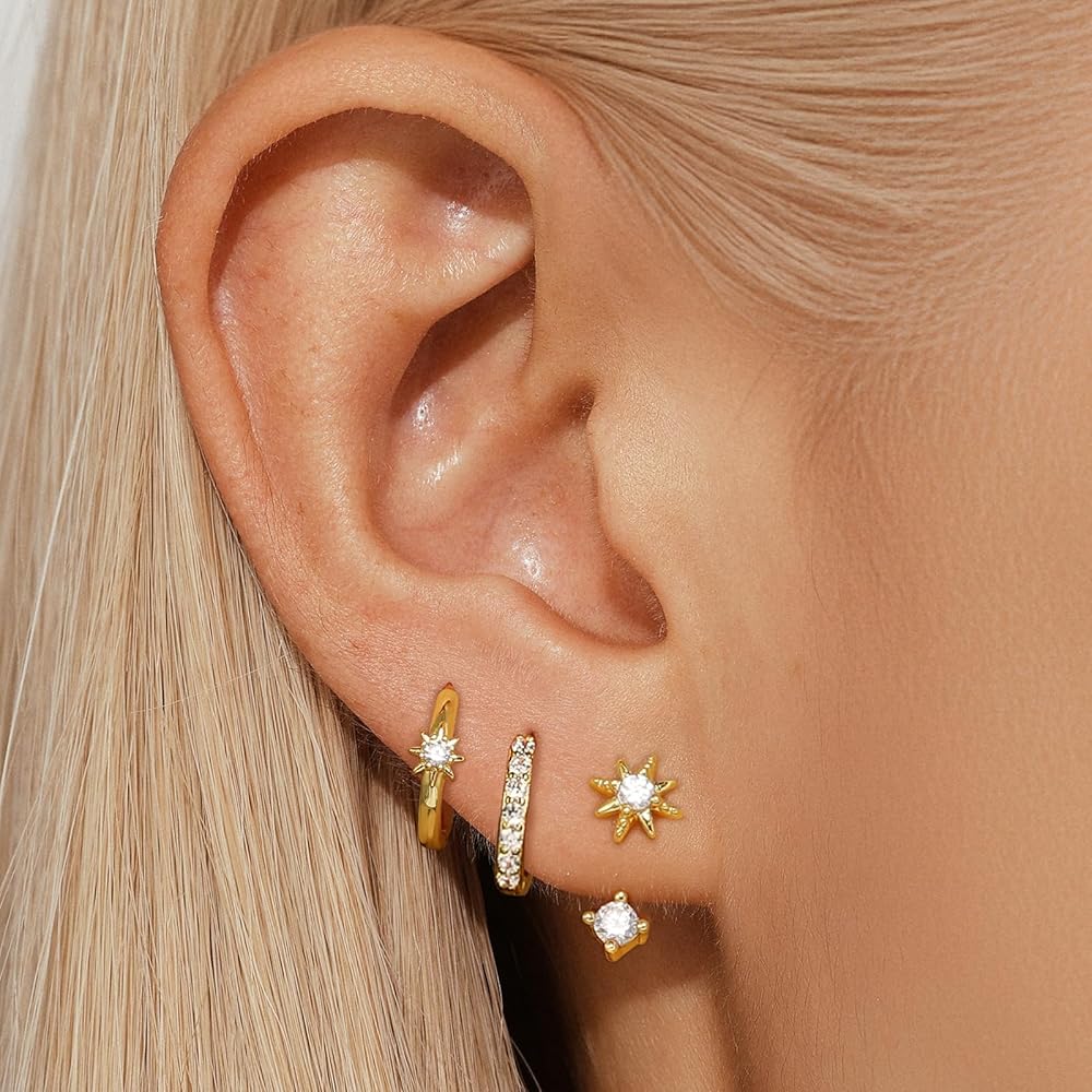 مجموعة من 3 أزواج من أقراط هوجي: تحتوي هذه الأقراط الذهبية على 3 أزواج من الأقراط، وزوج واحد من أقراط بولاريس الذهبية، وزوج واحد من الأقراط الحلقية تشيكوسلوفاكيا وزوج واحد من أقراط النجوم. إنها بالحجم المناسب، صغيرة ورقيقة، ولكنها ملفتة للنظر بما يكفي لتناسب كل امرأة بشكل مثالي
