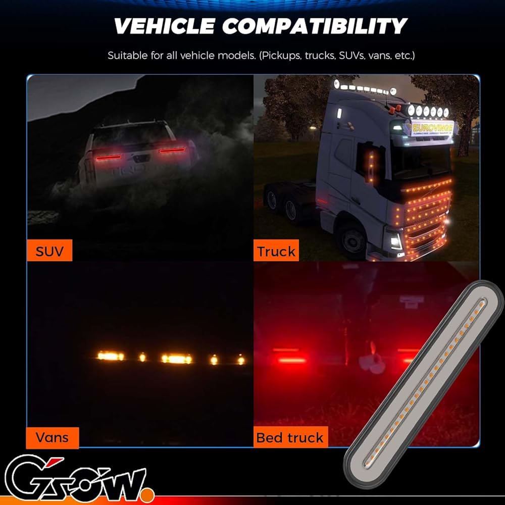 🔄 متعدد الوظائف 3 في 1: يجمع ضوء تشغيل المقطورة هذا بين ضوء فرامل أحمر عالي السطوع وإشارة انعطاف كهرمانية متتابعة وضوء تشغيل محسّن مع تأثير بدء تشغيل ديناميكي. يضيء المصباح الجاري في البداية بحركة دائرية قبل أن يستقر في توهج ثابت، مما يعزز الأسلوب والسلامة.