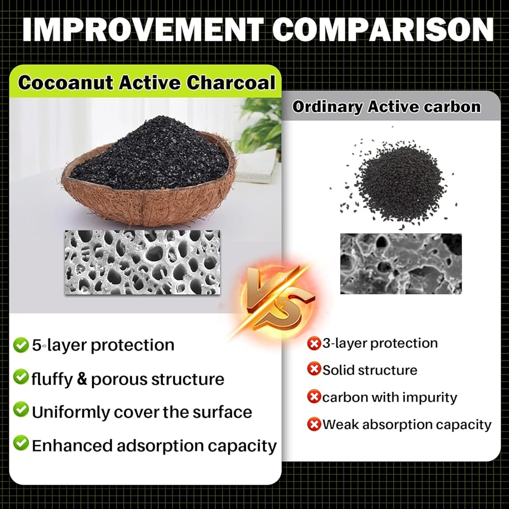 إمكانية ترشيح الجسيمات الدقيقة بنسبة 99.7%: يستخدم فلتر هواء المقصورة الممتاز طبقة مزدوجة من الكربون المنشط من قشرة جوز الهند، مما يوفر كفاءة عالية في إزالة الروائح الكريهة وقدرات امتصاص للحفاظ على الهواء منتعشًا ونظيفًا في السيارة ومنعه.