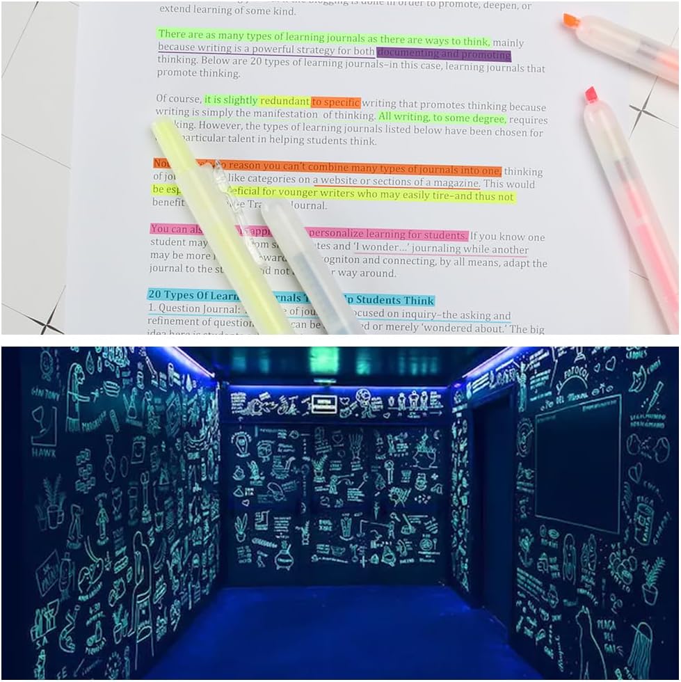 • ✔️ Brighter and bolder neon fluorescent colors can absorb and reflect more light than conventional colors. Fast-drying ink is waterproof and fade-resistant. Won't smear when highlighting over pencil or ink.