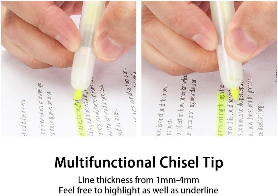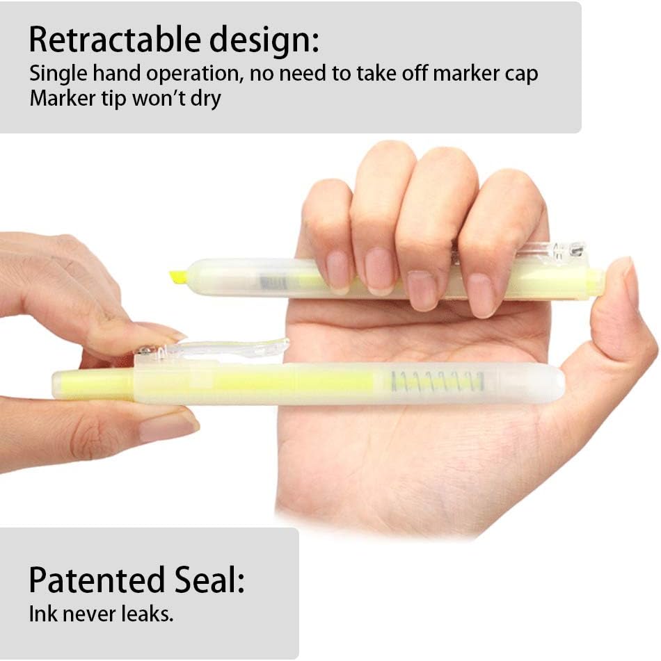 • ✔️ Convenient retractable neon highlighter pens featuring bright, water-based fluorescent pigmented ink for excellent waterproofness and light-resistance once dry. Classic chisel tip draws lines approximately 1mm-4 mm wide.