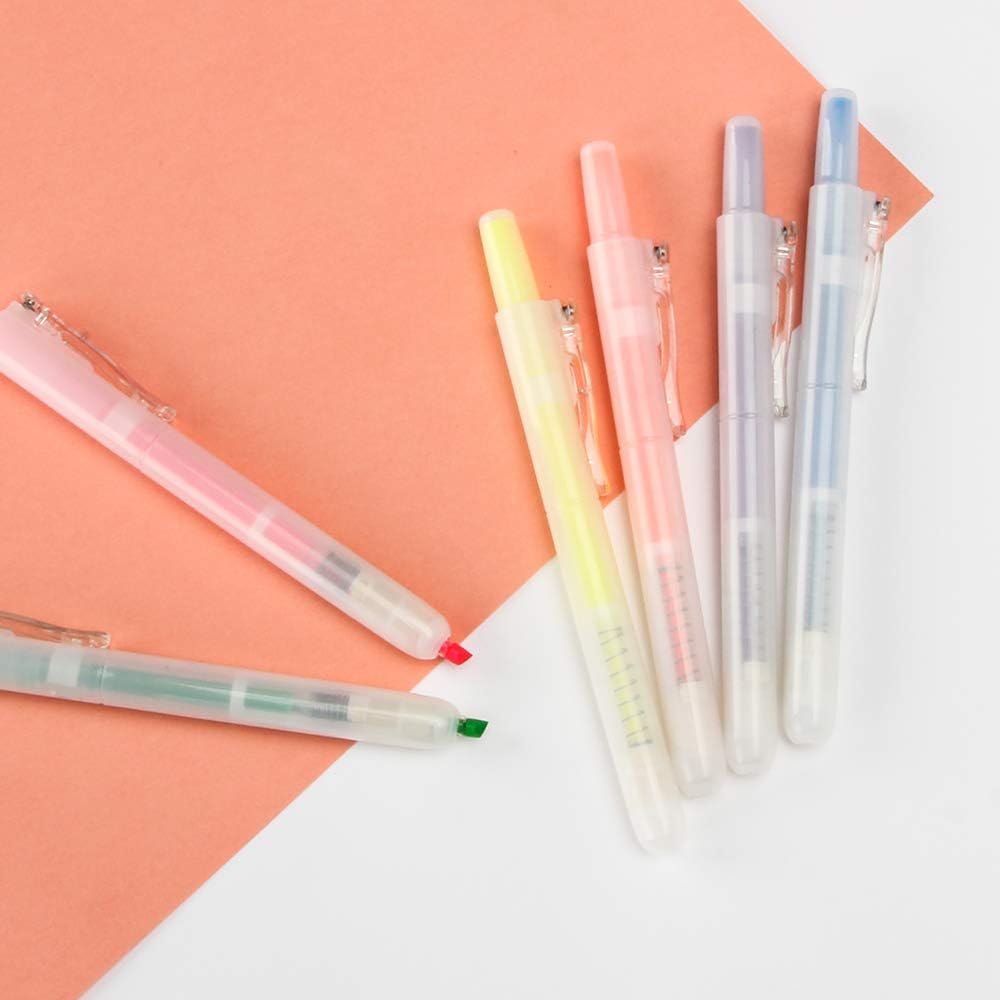 [6 ألوان] أقلام تحديد متنوعة بتصميم قابل للسحب، تشغيل بيد واحدة