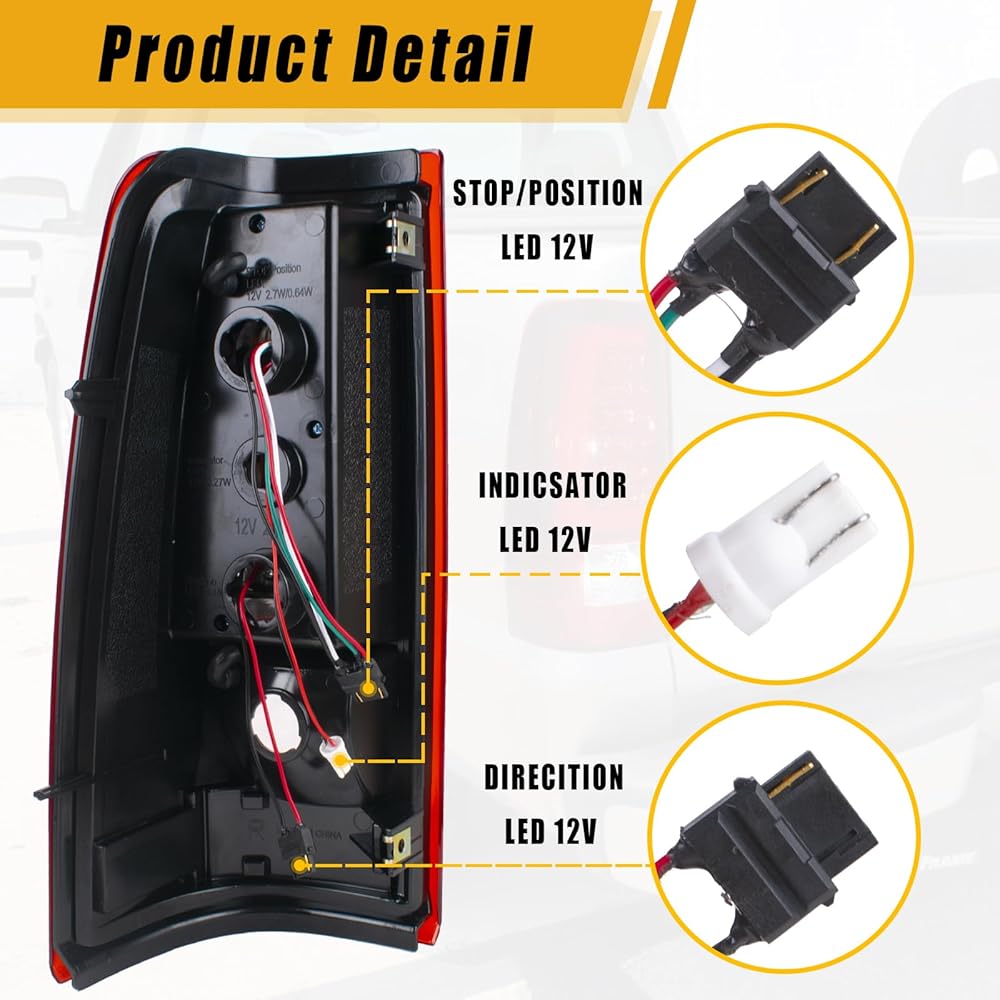 - تشمل العبوة: 1 × مصباح خلفي لجانب الراكب الأيمن، 1 × مصباح خلفي لجانب السائق الأيسر.