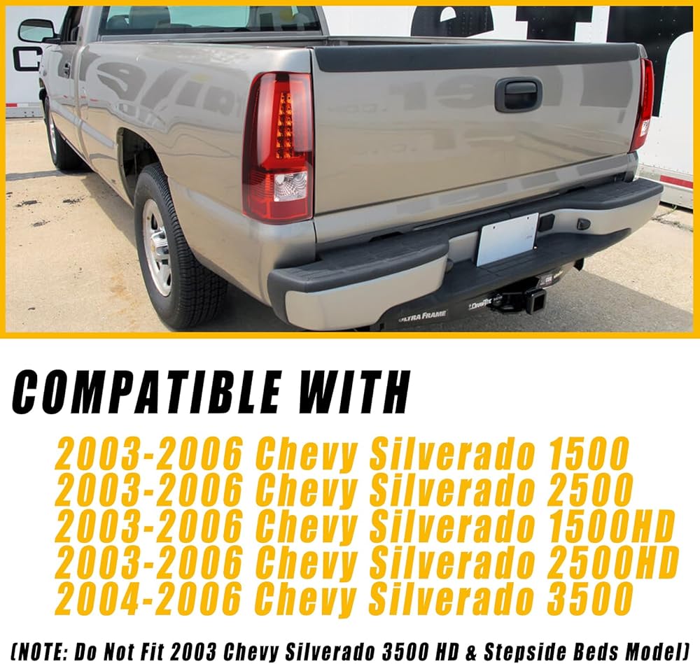 - متوافق مع: 2003-2006 تشيفي سيلفرادو 1500، 2003-2006 تشيفي سيلفرادو 2500، 2003-2006 تشيفي سيلفرادو 1500HD، 2003-2006 تشيفي سيلفرادو 2500HD، 2004-2006 تشيفي سيلفرادو 3500. (ملاحظة: لا تناسب 2003 تشيفي سيلفرادو 3 500 اتش دي & نموذج الأسرّة الجانبية)