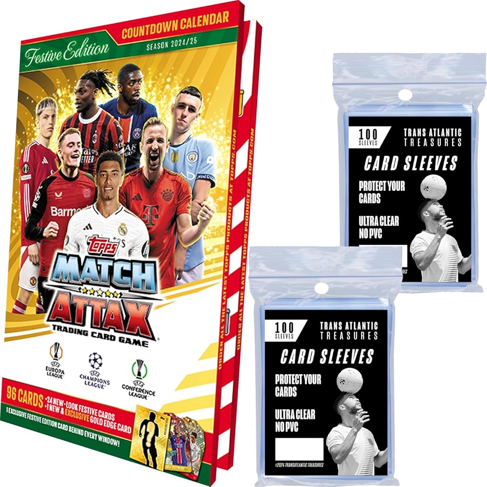 Get ready for the ultimate holiday countdown with the Topps Match Attax 2024-2025 Soccer Cards Advent Countdown Calendar bundle! This exciting festive set includes 96 cards, featuring 24 exclusive festive-themed cards and a brand-new Gold edge card. Each day reveals a surprise, with an exclusive festive edition card hidden behind every window. Perfect for collectors and soccer fans, this countdown calendar adds a fun, seasonal twist to your card collection. Plus, protect your prized cards with the included 100 card protectors, ensuring your collection stays in mint condition all year long. A must-have for Match Attax enthusiasts!