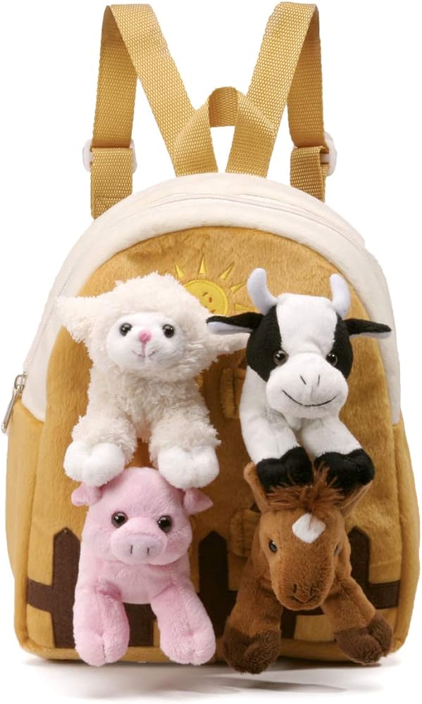 11" Farm Animal Backpack with Four (4) Stuffed Animals - Lamb, Pig, Cow, Horse