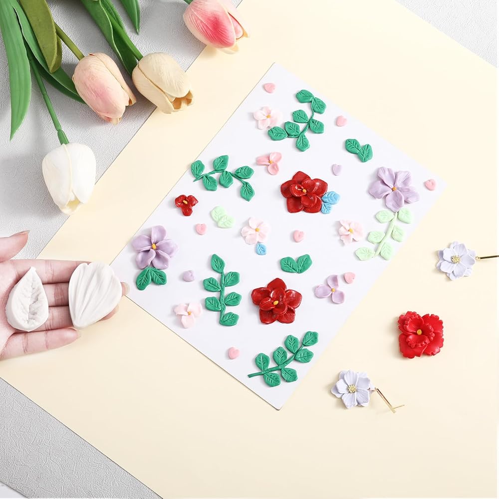 • الحجم الملائم: قوالب طين بوليمر صغيرة ثلاثية الأبعاد لصنع المجوهرات تتضمن تروس بتلات الزهور والقلب والزهور وأشكال أوراق الشجر، الحجم حوالي 8 مم إلى 20 مم، الحجم مناسب، مثالي للنساء لاستخدامه كأقراط أو دبابيس أو المعلقات الصغيرة، الخ