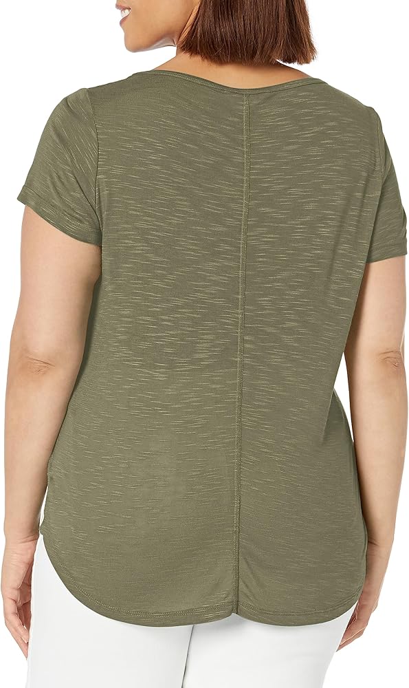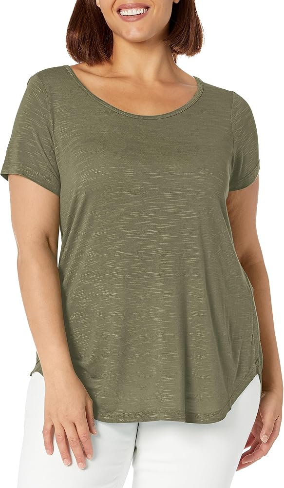 Take your look to the next level with the Slub Tee, offering a scoop neckline and short sleeves! Tailored in a relaxed silhouette, this style provides you endless comfort. Key Features Include: - Scoop neckline - Short sleeves - Relaxed silhouette - Pull-over fit - Soft Slub textured fabrication - Curved hip length hemline Pair with a cardigan and loafers on colder days.