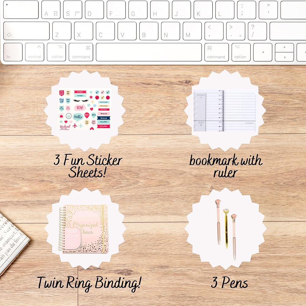 • أنيق وعملي: تابع أهدافك السنوية والأسبوعية مع هذا المخطط اليومي المصمم على طراز جدول الأعمال لعام 2024-2026. مع غطاء جميل يتميز بمقولة تحفيزية، سيضيف هذا المخطط الجمالي للمعلم والطلاب 2024-2026 لمسة من الذوق إلى التنظيم! بالإضافة إلى ذلك، يتضمن هذا المخطط الشهري 2024 3 أوراق ملصقات للمتعة والتحفيز.