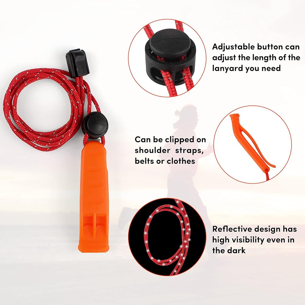 حبل عاكس قابل للتعديل: صفارة أمان بحبل، تصميم عاكس يتمتع برؤية عالية حتى في الظلام. الصافرة مصممة بمشبك، وهي تناسب أي مكان تقريبًا. على سبيل المثال، يمكن ارتداؤه حول الرقبة أو المعصم، أو تثبيته على الحزام أو أحزمة الكتف أو سترة النجاة. الحبال الخاصة بنا طويلة بما فيه الكفاية، ولا يمكن تعليقها حول الرقبة فحسب، بل يمكن أيضًا أن يتم لفها بسهولة من خلال حقيبة الظهر. التصميم المحمول مناسب للحمل معك في كل مكان، وسهل الاستخدام في حالة الطوارئ.
