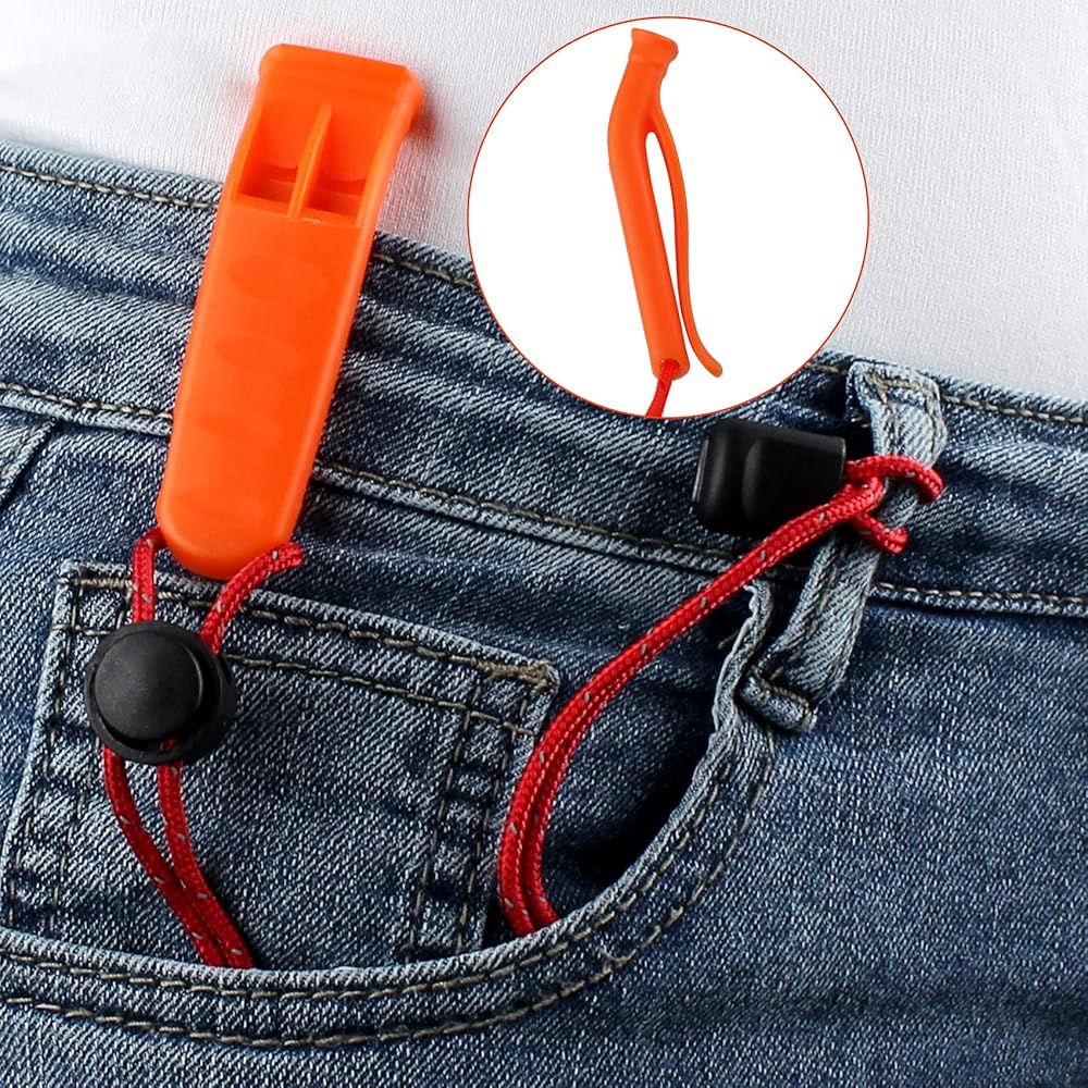 صفارات طوارئ عالية الصوت: تستخدم صافرة الطوارئ هذه ذات الحبل غرف صوت مزدوجة يمكن أن توفر ما يصل إلى 120 ديسيبل قوة صوت، بما يكفي لسماعها على بعد ميل. يمكن أن يسمح للآخرين بتأكيد موقعك بسرعة ويجعلك تحصل على الإنقاذ بسرعة. تعمل بشكل رائع كصافرة إشارة.