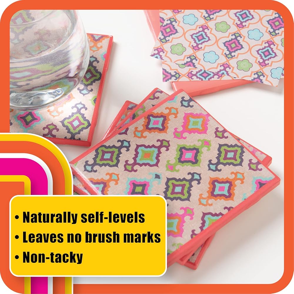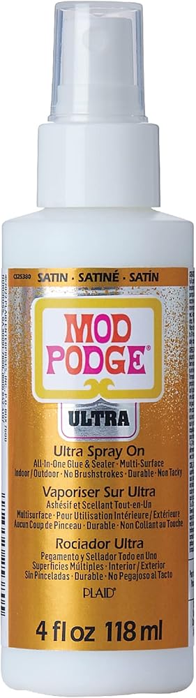 CONVENIENT SIZE – Mod Podge Ultra Satin comes in a 4 oz size - perfect for all your decoupage projects! This spray decoupage glue also comes in a gloss and a matte finish in two versatile sizes: 4 oz and 8 oz