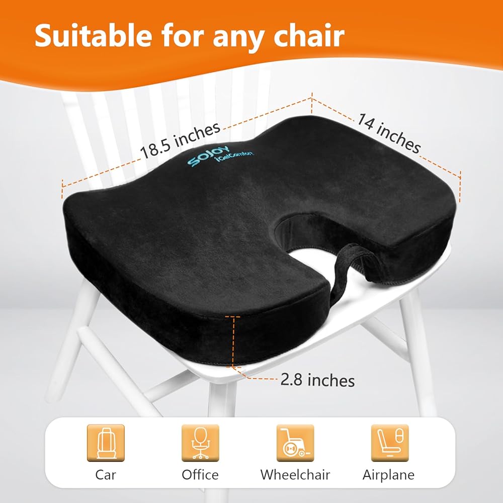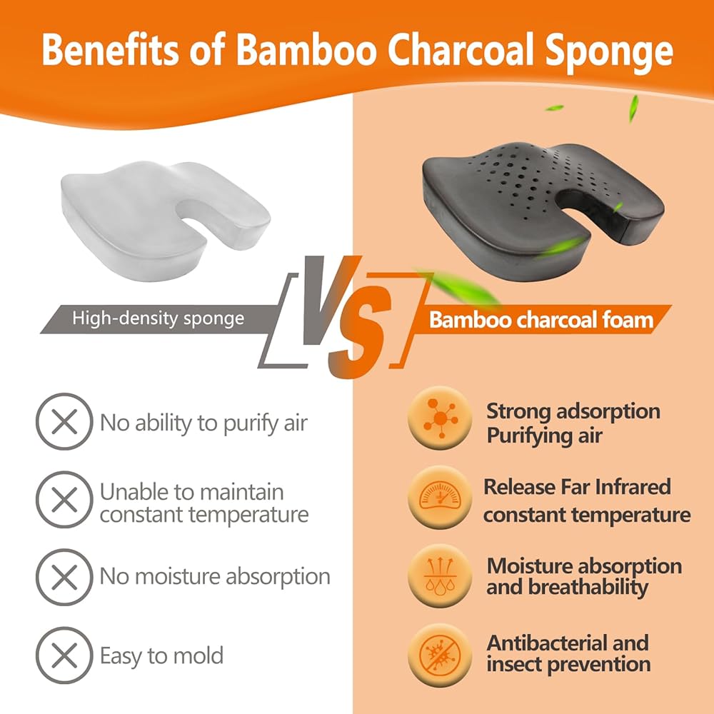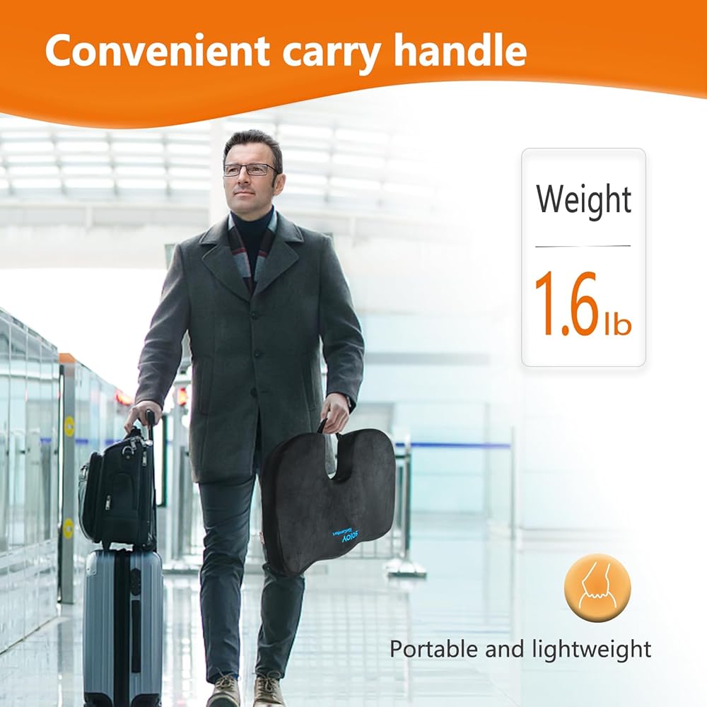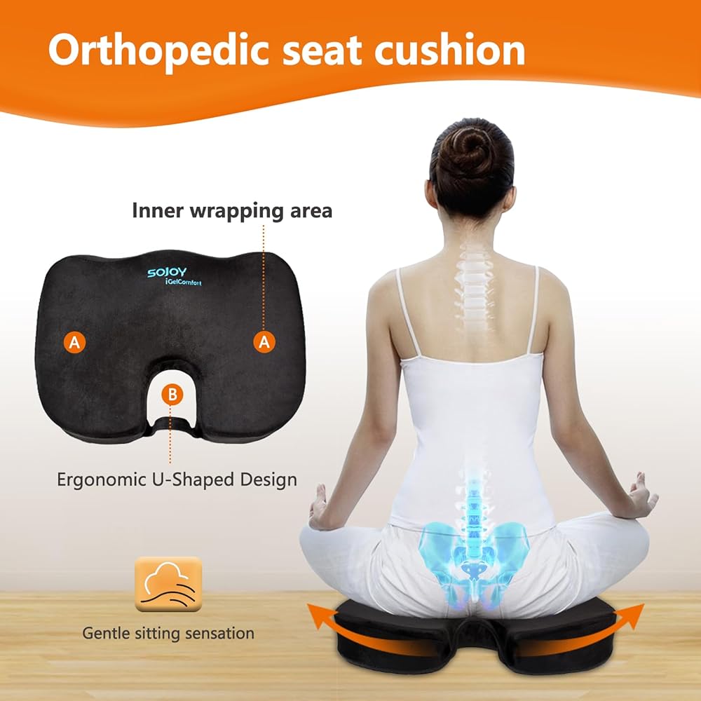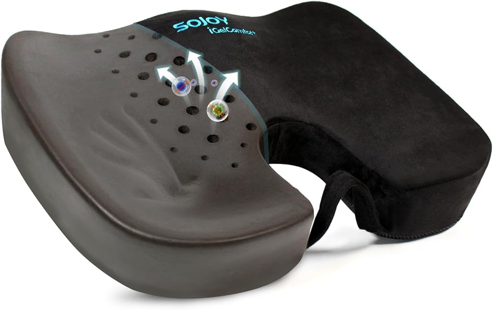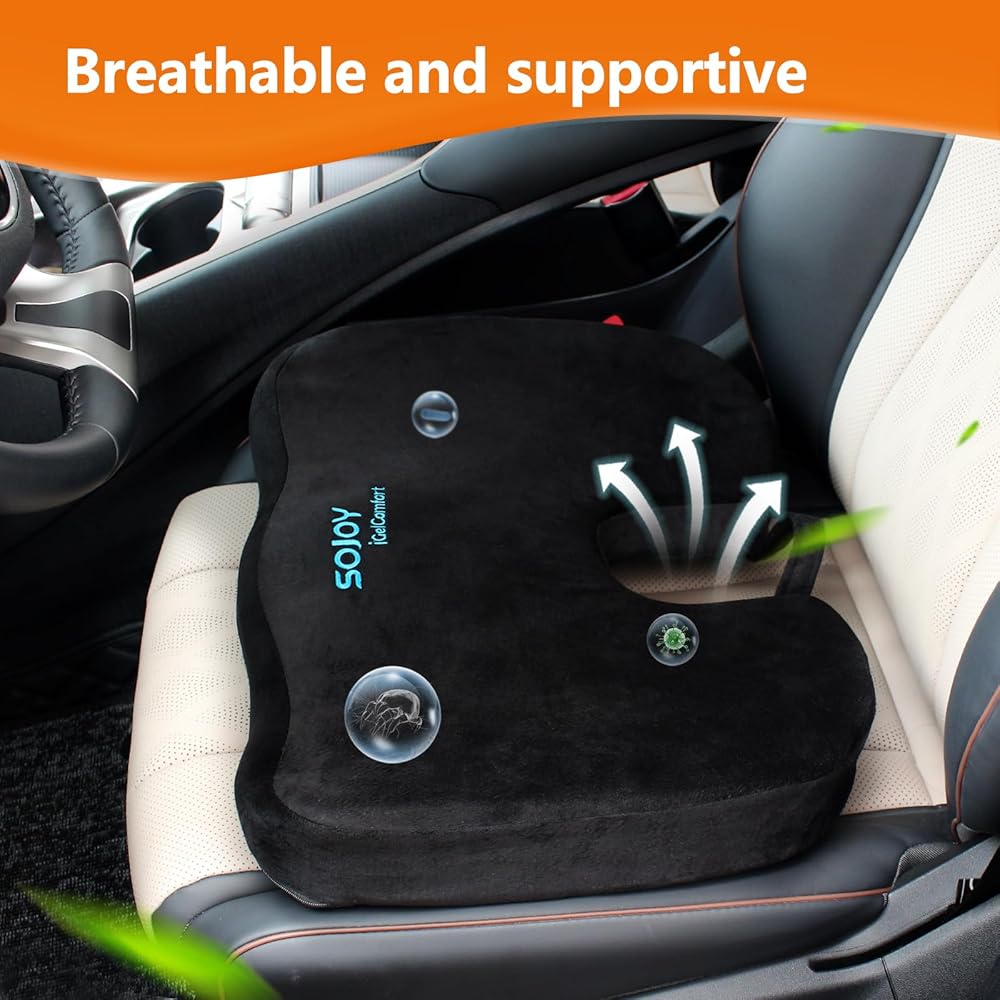 وسادة كرسي مكتب Sojoy، وسادة مقعد السيارة من إسفنج الذاكرة الفحمي، الورك وعرق النسا والعصعص، وسادة مقعد لتخفيف آلام أسفل الظهر للمكتب، الكرسي، مقعد السيارة