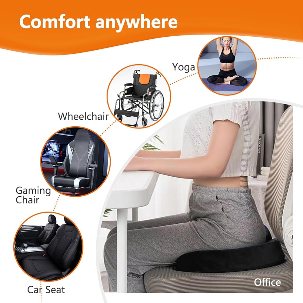 • مثالية لأي مكان تجلس فيه - وسادة المقعد الجل مناسبة للسيارة وكرسي المكتب وغرفة المعيشة وغرفة الطعام والمطبخ والفناء وحتى كرسيك المتحرك. رائعة للمناسبات الرياضية وسائقي الشاحنات والطيارين والسفر بالطائرات. رائع أيضًا للنساء الحوامل!.