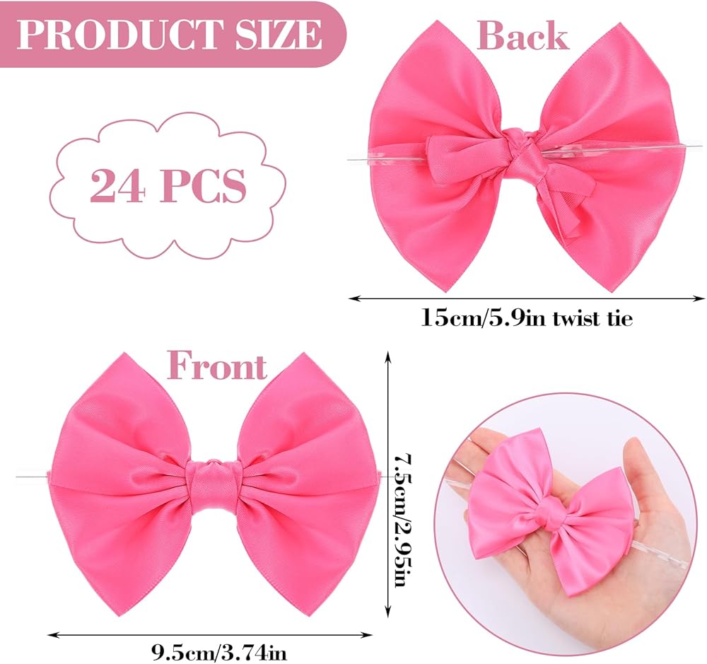 【Save Time and Look Good】The pre-tied twisted satin bows are conveniently designed to make your bags, crafts and gift packaging look chic without any hassle. These pink bows bulk are already tied into cute bows, so you just need to use our twist ties to secure them to the packaging, which are easy to twist and firmly secure the packaging. Since the little bows for crafts are twisted, they can also be easily removed to enjoy your snacks or party favors