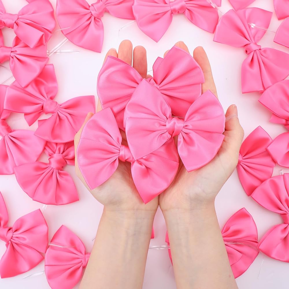 【Sufficient Quantity】You will receive 24 pre-made pink bows for crafts, made of high-quality double-sided satin ribbon, the quantity is enough for daily packaging and decoration needs, each bow is carefully handmade, the pre-tied small pink bows have a smooth and shiny surface, exuding a sense of luxury, elegant shape, and good visual effect