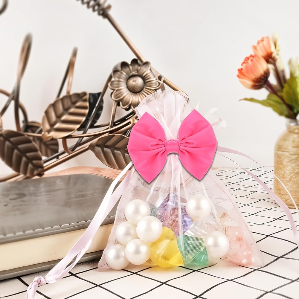 【Wide Range of Uses】Pink bows for crafts can be used for party gift bags, snack bags and candy bags, which contain candies, baked goods, cookies, cakes, lollipops, candies and brownies, and are widely used in weddings, birthdays, bridal showers, engagement parties, baby showers, graduations, Easter, holidays, special occasions