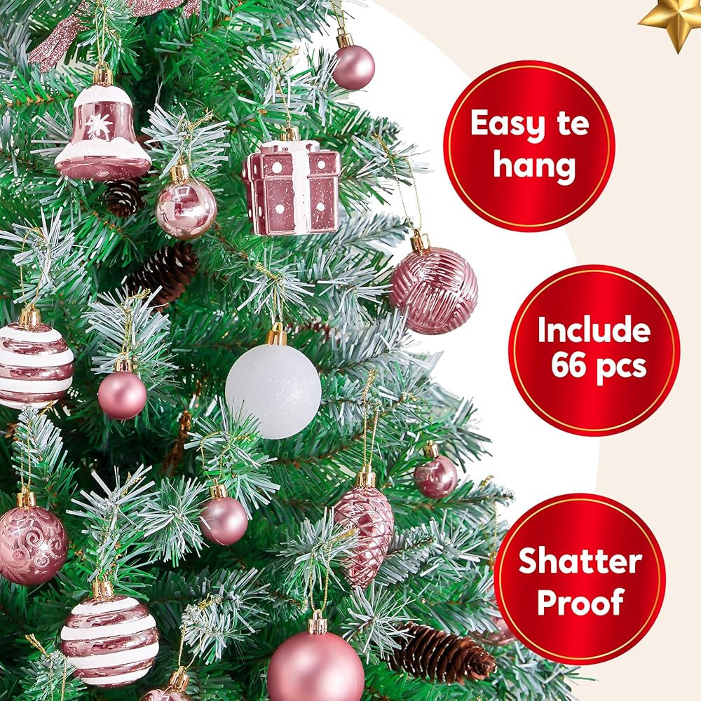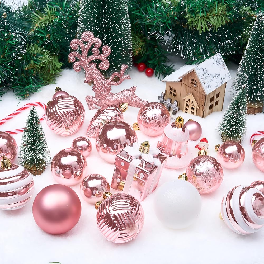 66 قطعة من زخارف عيد الميلاد المتنوعة من جويدومي، زينة عيد الميلاد مقاومة للكسر للعطلات، وتزيين الحفلات، وزخارف الأشجار، والمناسبات، وعيد الميلاد (وردي)