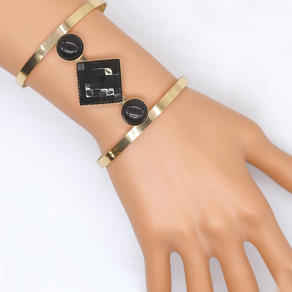 أسورة كريستالية مجوفة قابلة للتعديل على الموضة البوهيمية لامعة، مجوهرات للنساء مطلية بالذهب (أسود)