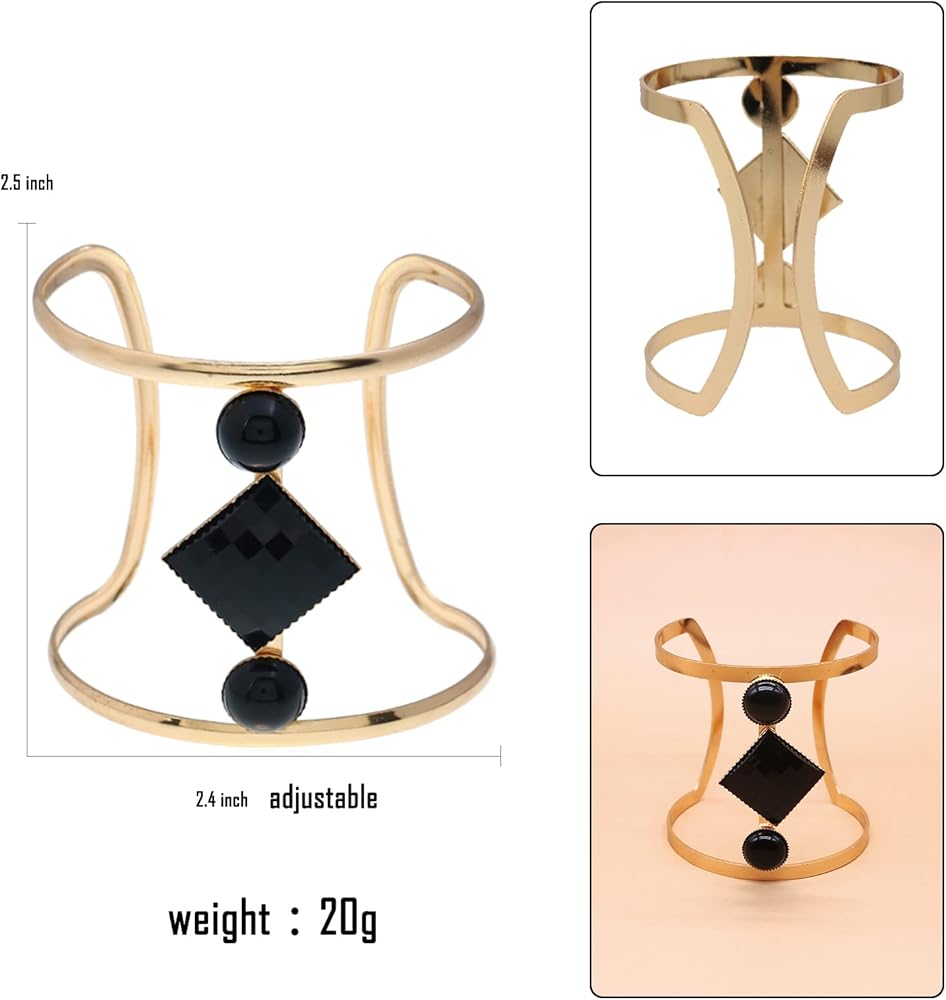 • This fashionable adjustable hollow opening metal cuff wide bracelet inner diameter is 2.4inches , works on practically anyone! Made with quality environment-friendly metal , makes you shine in the light. plated which with good luster won't rust or eroded. for a touch of elegant sparkle, the bracelet is the go-to accessories.