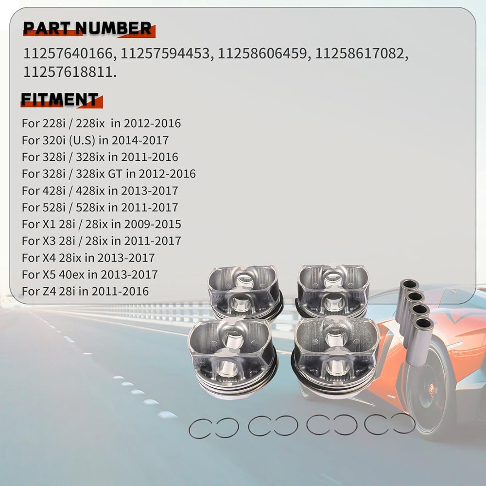 For 228i / 228ix in 2012-2016, for 320i (U.S) in 2014-2017, for 328i / 328ix in 2011-2016, for 328i / 328ix GT in 2012-2016, for 428i / 428ix in 2013-2017, for 528i / 528ix in 2011-2017, for X1 28i / 28ix in 2009-2015, for X3 28i / 28ix in 2011-2017, for X4 28ix in 2013-2017, for X5 40ex in 2013-2017, for Z4 28i in 2011-2016